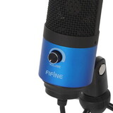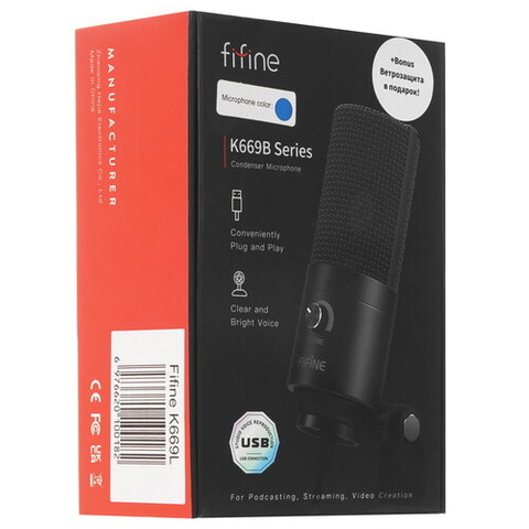 Игровой микрофон Fifine K669 доступен в синем исполнении и поставляется с настольной подставкой. Длина USB-кабеля составляет 1.8 метра, что позволяет подключать устройство к удаленным портам компьютера. Конденсаторный микрофон оснащен капсюлем диаметром 16 мм и поддерживает широкий частотный диапазон от 20 до 20000 Гц, обеспечивая низкий уровень искажений.