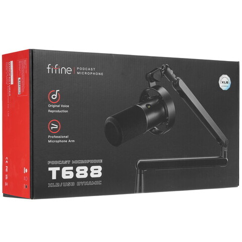 Fifine T688 — это микрофонный комплект, включающий динамический микрофон, пантограф и антивибрационный подвес в форме паука.