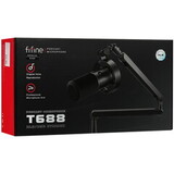 Микрофон Fifine T688 поддерживает аналоговый интерфейс XLR, что расширяет его совместимость. Подключение через USB осуществляется с помощью 2.5-метрового кабеля USB-C - USB-A. Устройство оснащено разъемом мини-джек для наушников, кнопкой отключения и двумя регуляторами громкости – для микрофона и наушников.