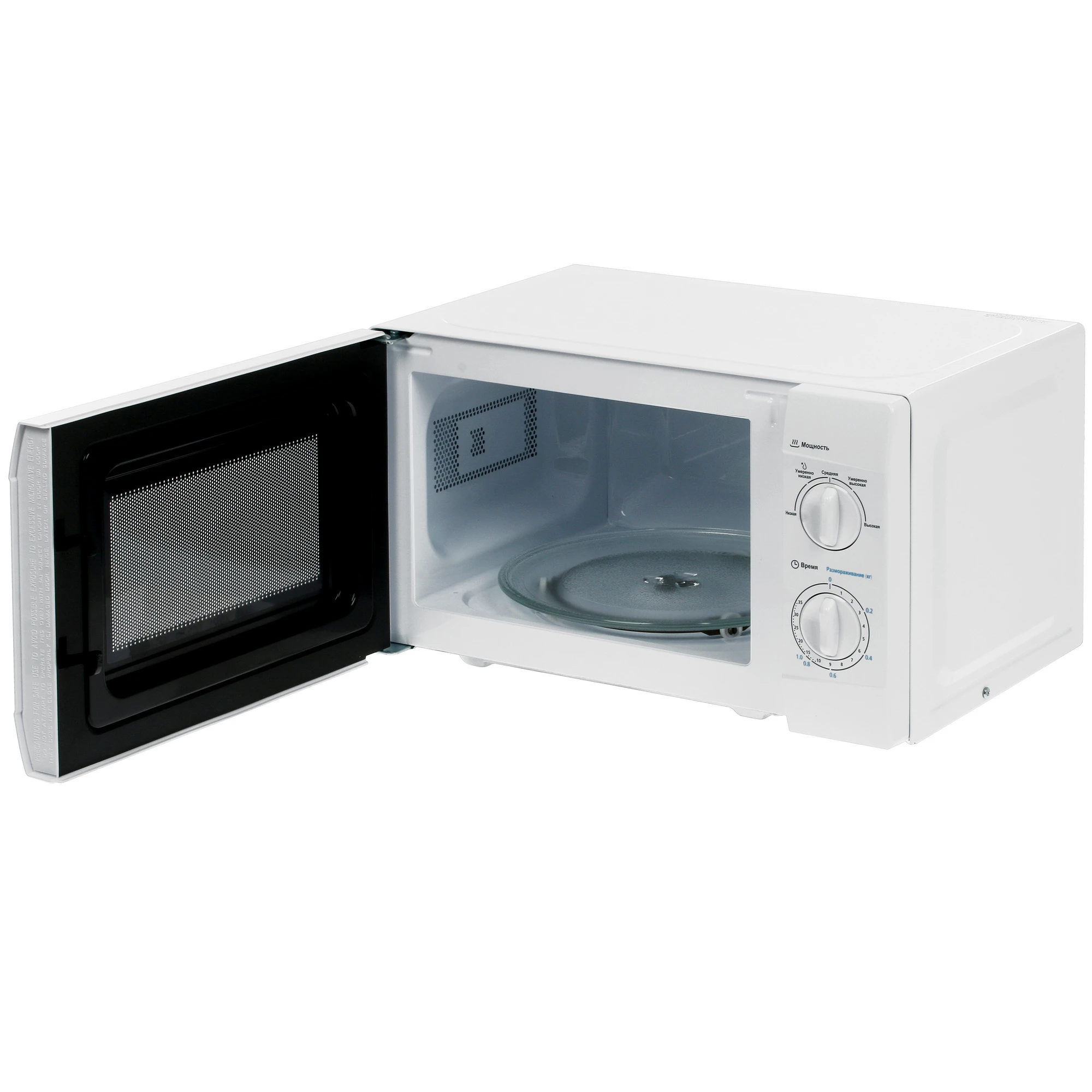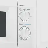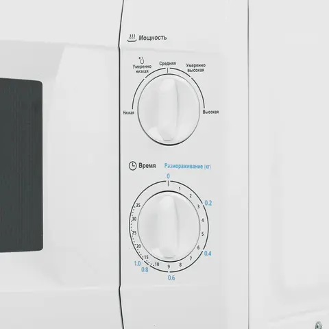 Мощность в 700 Вт обеспечивает быстрый нагрев продуктов. Управление осуществляется с помощью удобных поворотных переключателей справа от дверцы. Один переключатель регулирует мощность, другой — время работы, которое может достигать 35 минут. Дверца открывается налево, а встроенная подсветка позволяет наблюдать за процессом приготовления.
