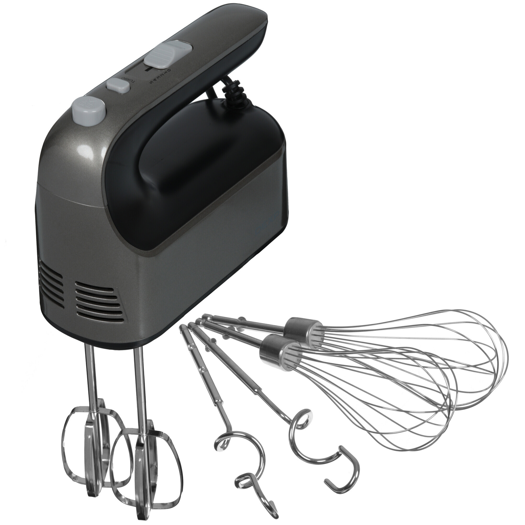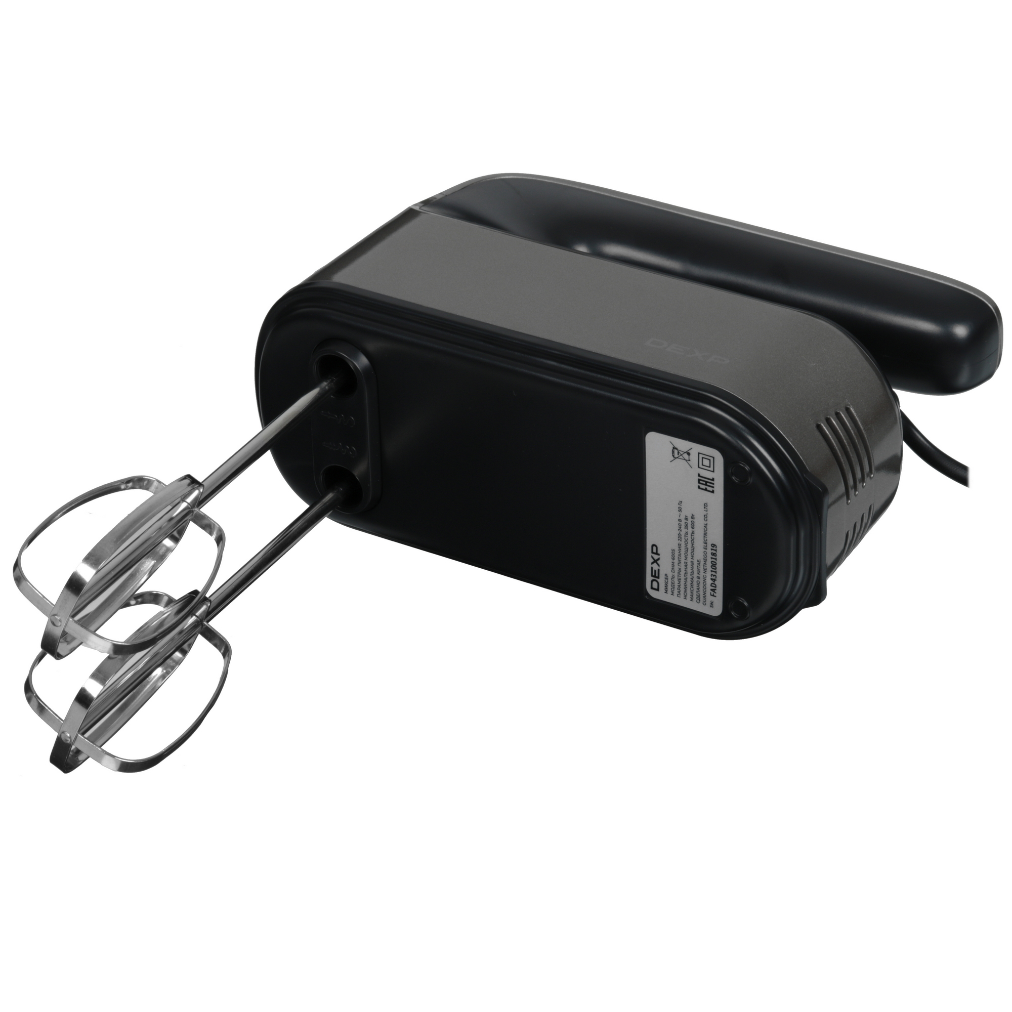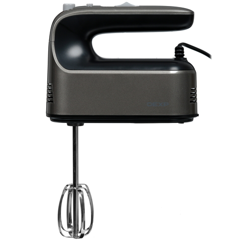 Ручной миксер DEXP DHM-600S серебристого цвета подходит для замешивания теста и приготовления других продуктов благодаря номинальной мощности 350 Вт и максимальной мощности 600 Вт. Модель поддерживает 5 скоростей и турборежим. Электронное управление с помощью кнопок гарантирует точность настройки прибора. Долговечность устройства улучшена благодаря системе плавного пуска двигателя. Миксер DEXP DHM-600S поставляется с 2 венчиками для взбивания, 2 крюками для замешивания теста и 2 насадками для смешивания. Удобство подключения устройства к розетке на кухонном фартуке или возле стола обеспечивает 1.2-метровый кабель. Смену насадок упрощает специальная кнопка для их отсоединения.