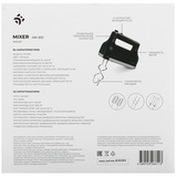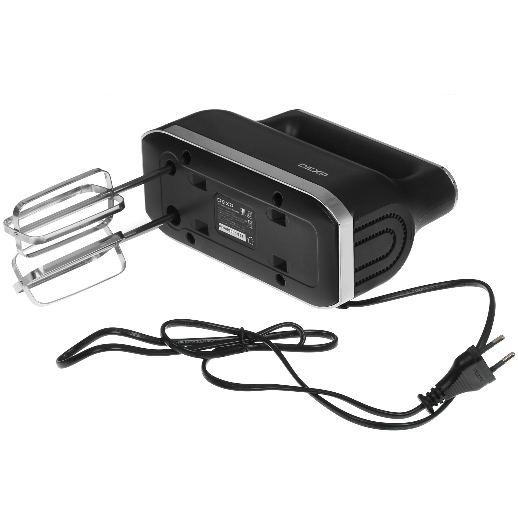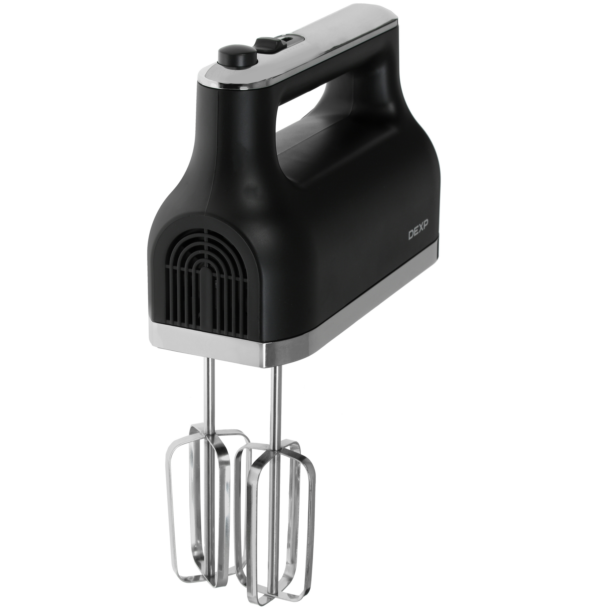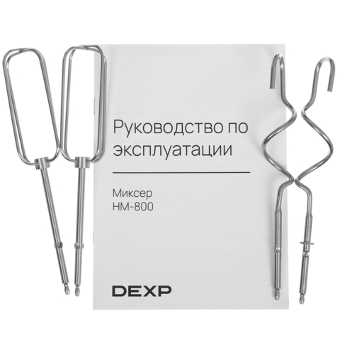 Миксер выполнен в прочном пластиковом корпусе с вентиляционными отверстиями. Отдельная кнопка на рукоятке служит для простого отсоединения насадок. В комплекте с миксером DEXP HM-800 поставляются 4 венчика и 2 крюка.