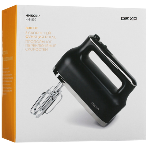 Миксер DEXP HM-800 позволяет замешивать тесто, готовить крем и соусы, смешивать различные ингредиенты в однородную массу без комочков. Благодаря 5 скоростным режимам прибор предусматривает настройку скорости вращения насадок при помощи позиционного переключателя. Импульсный режим выполняет переработку с кратковременными паузами, что предотвращает перегрев двигателя.