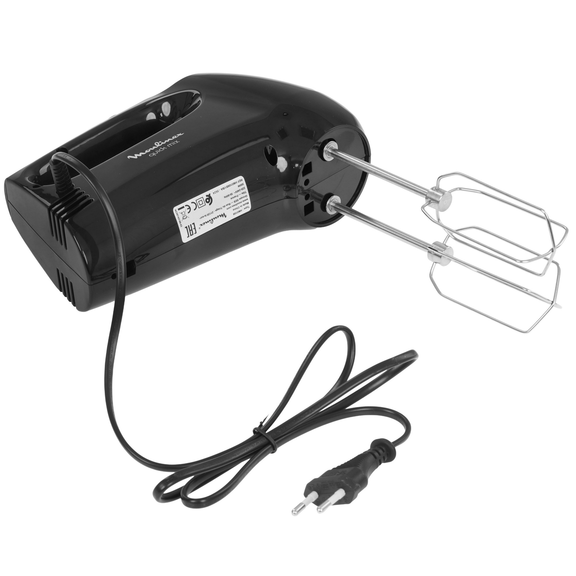 Миксер Moulinex Quick Mix HM3108B1 сделан из пластика, а насадки — из нержавеющей стали. Нержавейка не влияет на вкус и состав ингредиентов и устойчива к коррозии. Насадки можно легко отсоединить от прибора нажатием кнопки и промыть под проточной водой.
