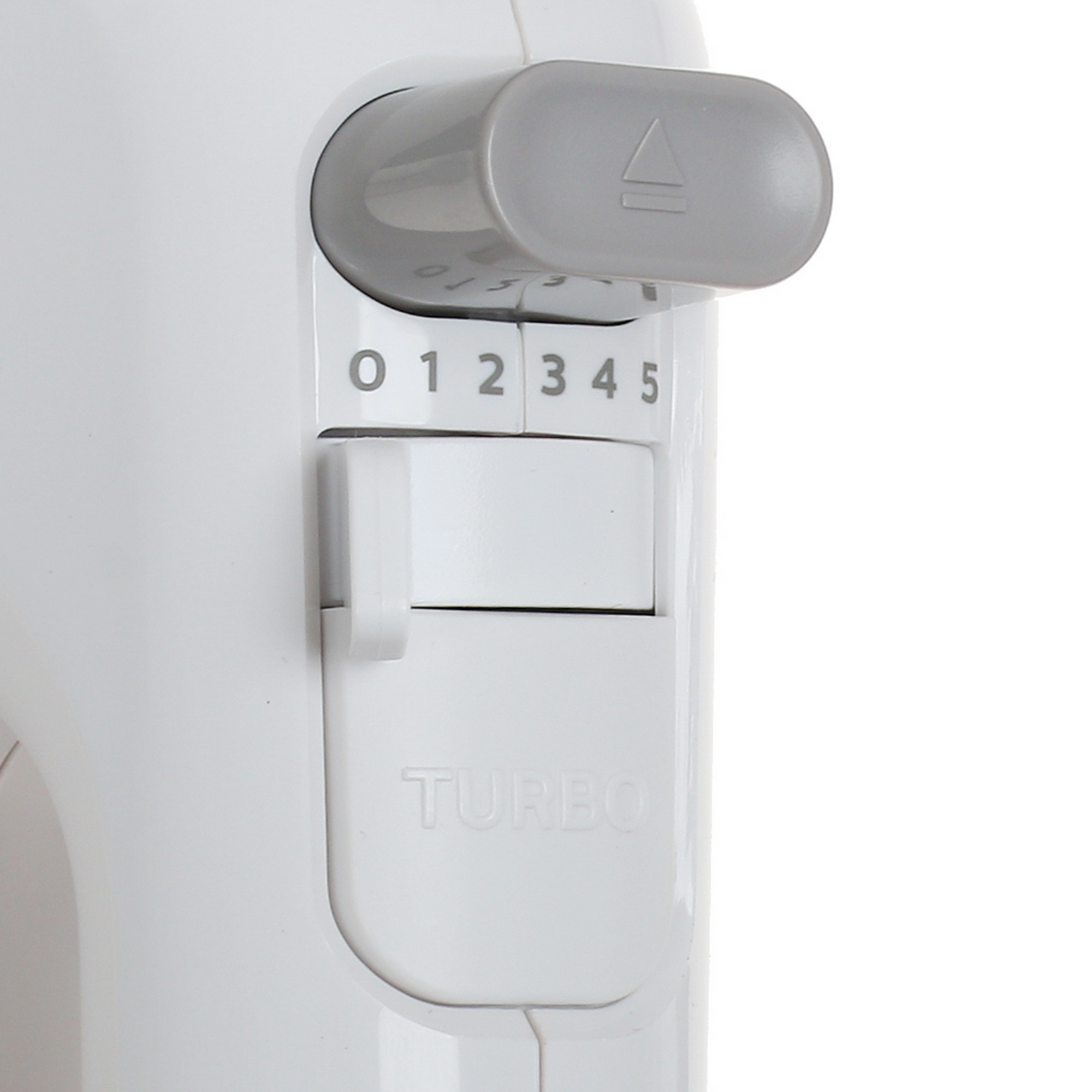 Миксер Philips HR3705/00 обладает незаменимым переключателем на корпусе, при помощи которого вы без труда установите 1 из 5 возможных скоростных режимов. Еще одно достоинство этого домашнего помощника – наличие специальной кнопки, позволяющей невероятно быстро заменить одну насадку на другую.
