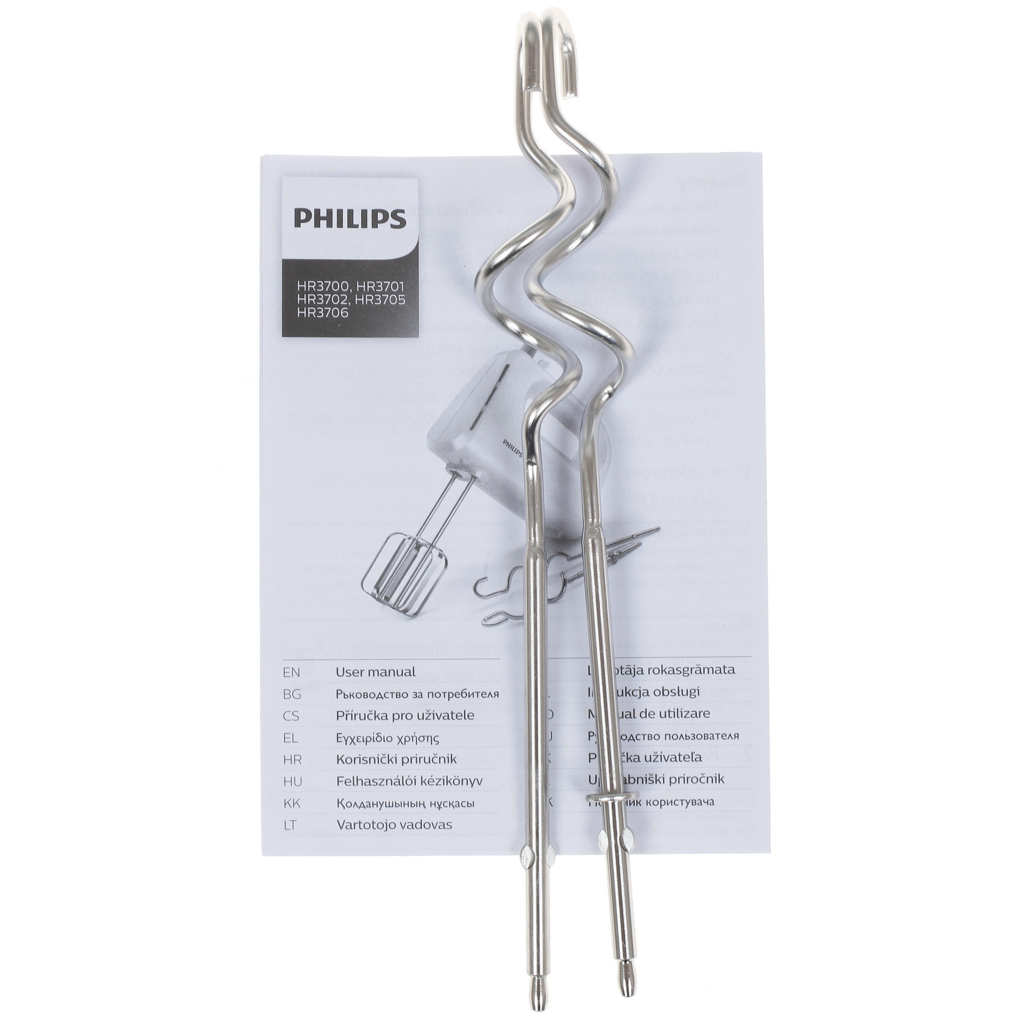 Модель Philips HR3705/00 придется как нельзя кстати как для взбивания различных ингредиентов, так и для замешивания теста, ведь комплектуется соответствующими насадками. Длинный шнур питания позволит вам расположить миксер в любом удобном месте. А его пластиковый корпус с легкостью очищается от множества накопившихся загрязнений.