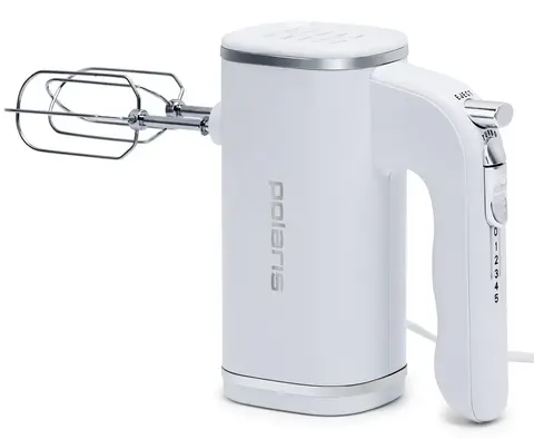 Polaris PHM 7021 содержит в комплекте четыре насадки, две из которых стандартные ‒ венчики. Благодаря их оптимальной форме вы сможете быстро взбить яйца или сливки до требуемой рецептом консистенции. Остальные две насадки выполнены в виде крюков и предназначены для замешивания теста. Они работают с тестом любой консистенции, поэтому вам будет легко приготовить тесто для блинчиков или замесить более упругое и тугое тесто для булочек или кексов.