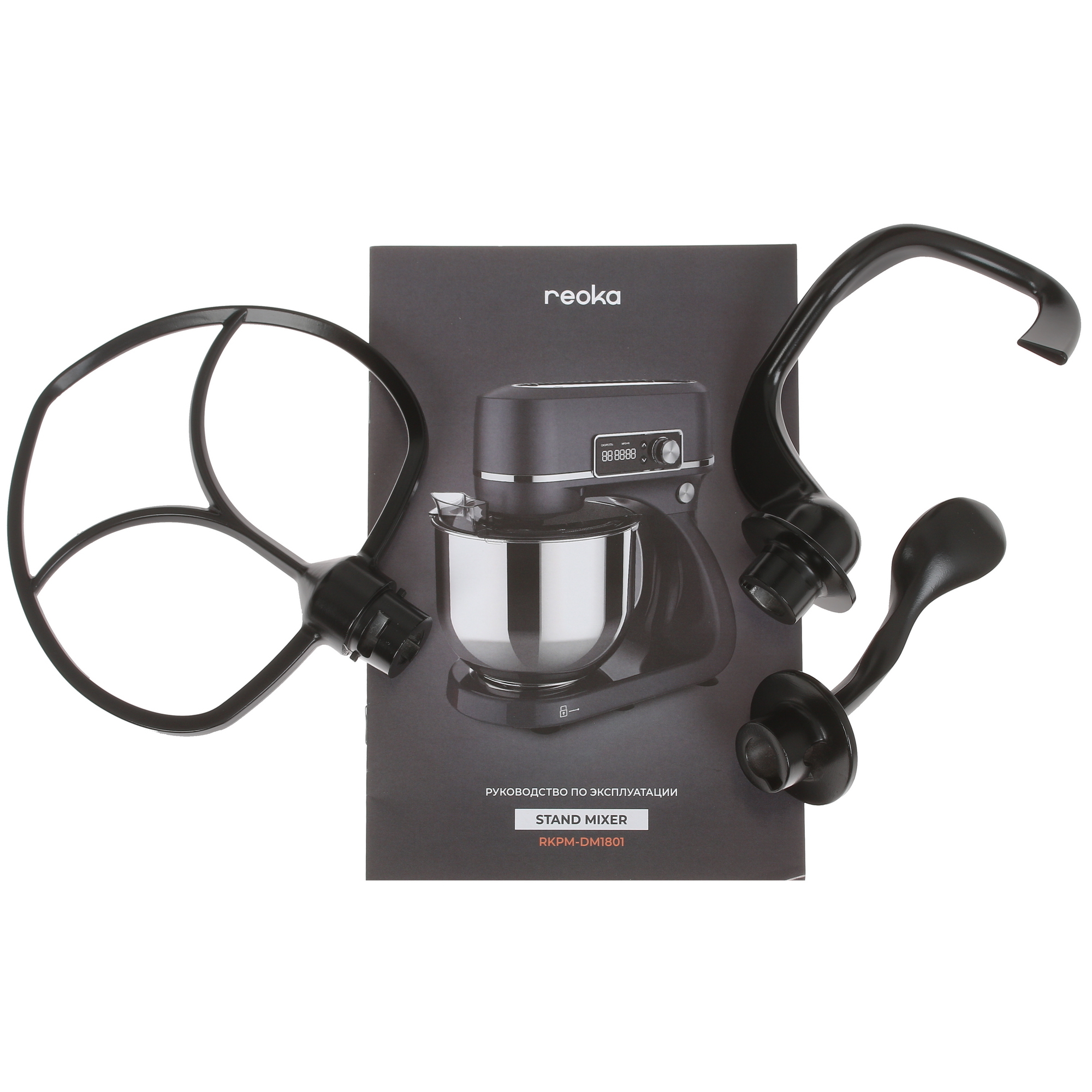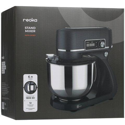 Миксер Reoka RKPM-DM1801 с технологией планетарного вращения насадок обеспечивает тщательное и равномерное смешивание ингредиентов. Съемная чаша емкостью 6 л выполнена из нержавеющей стали, поэтому устойчива к коррозии и повреждениям. Она не вступает в реакцию с продуктами и не меняет их вкусовые свойства. Защитная крышка предотвращает разбрызгивание. С помощью 12 скоростных режимов можно плавно регулировать интенсивность вращения насадок. Для удобного контроля параметров установлена электронная панель с дисплеем и поворотным механизмом. В комплекте с миксером Reoka RKPM-DM1801 поставляются насадка-лопатка, венчик, 2 крюка для замешивания теста.