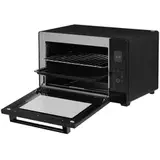 Мини-печь Reoka RKEO-D2042 в черном цвете — компактная электрическая печь с антипригарным покрытием. Она подходит для приготовления курицы, мяса, выпечки и хлеба, а также для подогрева. Благодаря функции разморозки, устройство может заменить микроволновую печь.