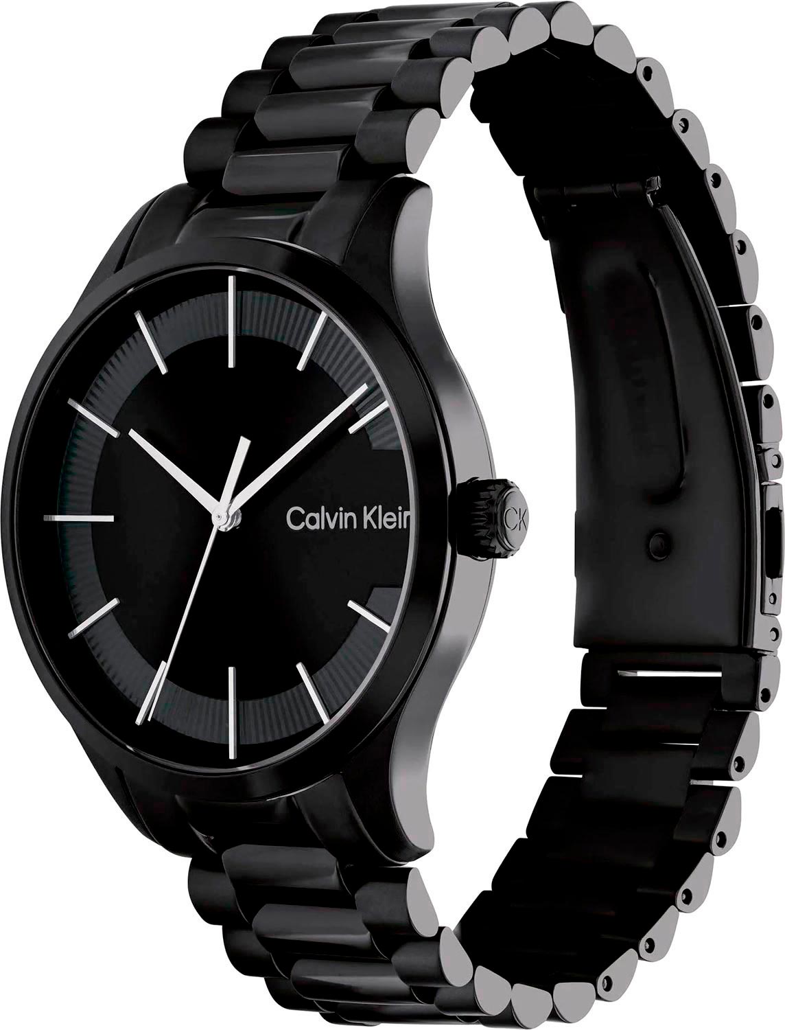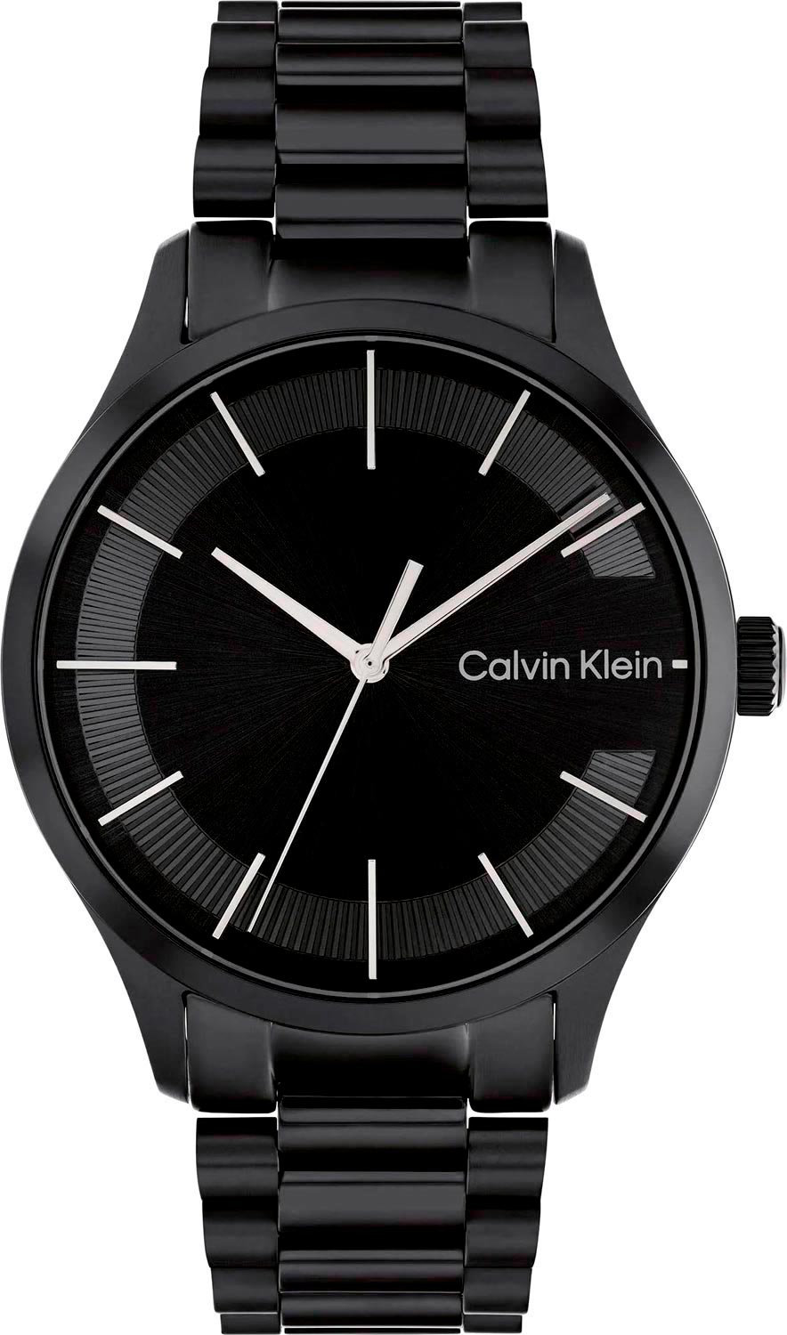 Элегантные часы, которые подойдут для любого случая и стиля. Практичные наручные часы унисекс. Круглый стальной корпус с матовым и полированным покрытием. Циферблат изготовлен по технологии Sunray (солнечные лучи) и украшает фирменный логотип Calvin Klein. Метки в виде штрихов расположены по кругу. Прямоугольные стрелки выполнены в стиле Baton. Заводная головка с рифленой поверхностью украшена логотипом ''ck''. Прочный стальной браслет с матовым и полированным покрытием. Застежка типа раскладушка.