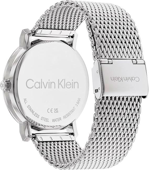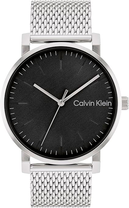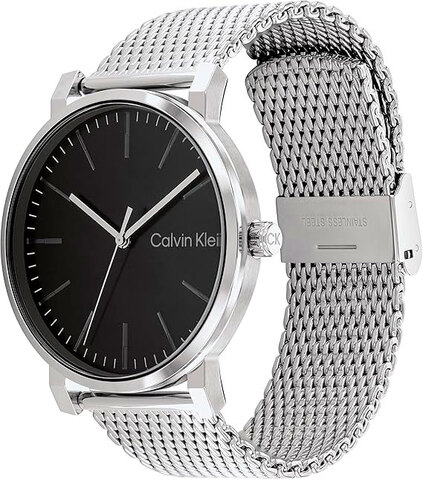 Эти изысканные мужские часы, выполненные в элегантном классическом стиле, прекрасно подойдут для повседневного использования. Модель имеет круглый стальной корпус, а циферблат, отмеченный тонкими штрихами, украшен логотипом бренда Calvin Klein. Заводная головка рифленой формы. Браслет из стали с миланским плетением и регулируемой застежкой.