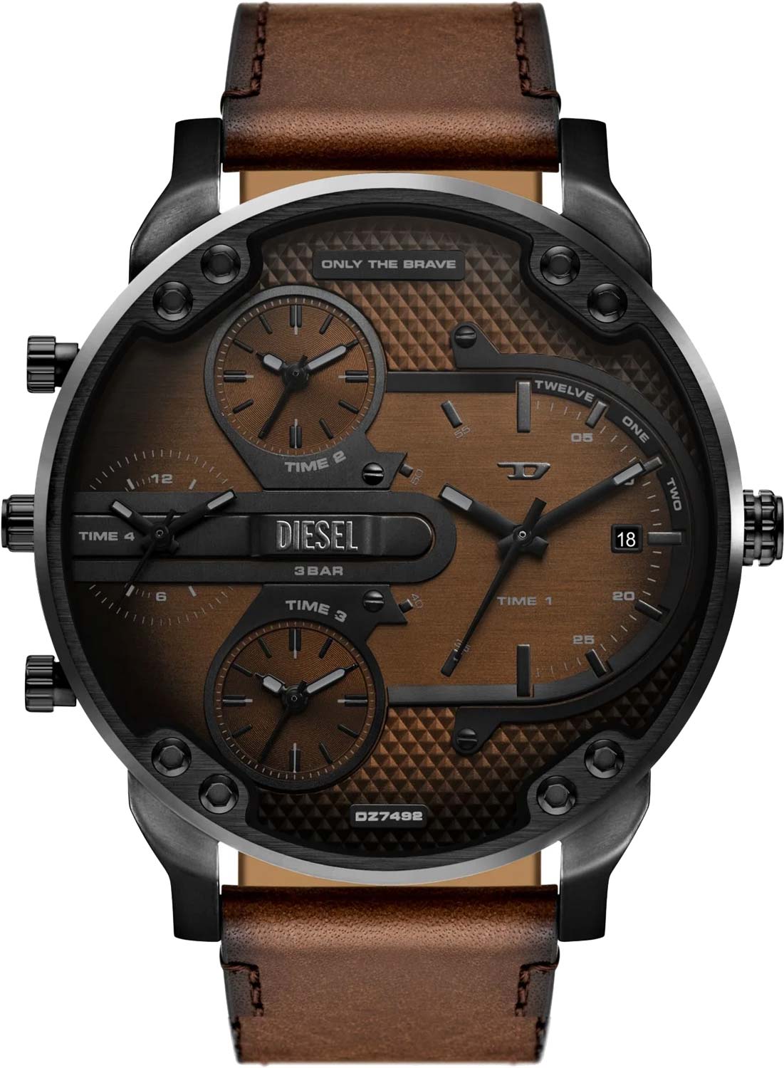 Mr. Daddy Slim — мужские часы с хронографом и секундомером, поддерживающие отображение времени в четырёх часовых поясах. Они оснащены двумя форматами времени: 12-часовым и 24-часовым. Крупный корпус из нержавеющей стали имеет матовую поверхность. Циферблат с метками в виде штрихов выполнен по технологии Sunray (с эффектом солнечных лучей). Окошко даты расположено в положении 3 часов. Метки также представлены в виде штрихов. Часы дополнены удобным кожаным ремешком с классической застёжкой.