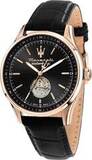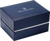 Мужские механические часы. В механизме 21 камень, частота 21600 полуколебаний в час, запас хода 42 часа. Часы оснащены функцией stop-second и возможностью ручного завода. Через прозрачное окошко на циферблате можно увидеть работу механизма. Циферблат по технологии Sunray с логотипом «Maserati». Заводная головка и задняя крышка завинчиваются. Ремешок с классической застежкой.