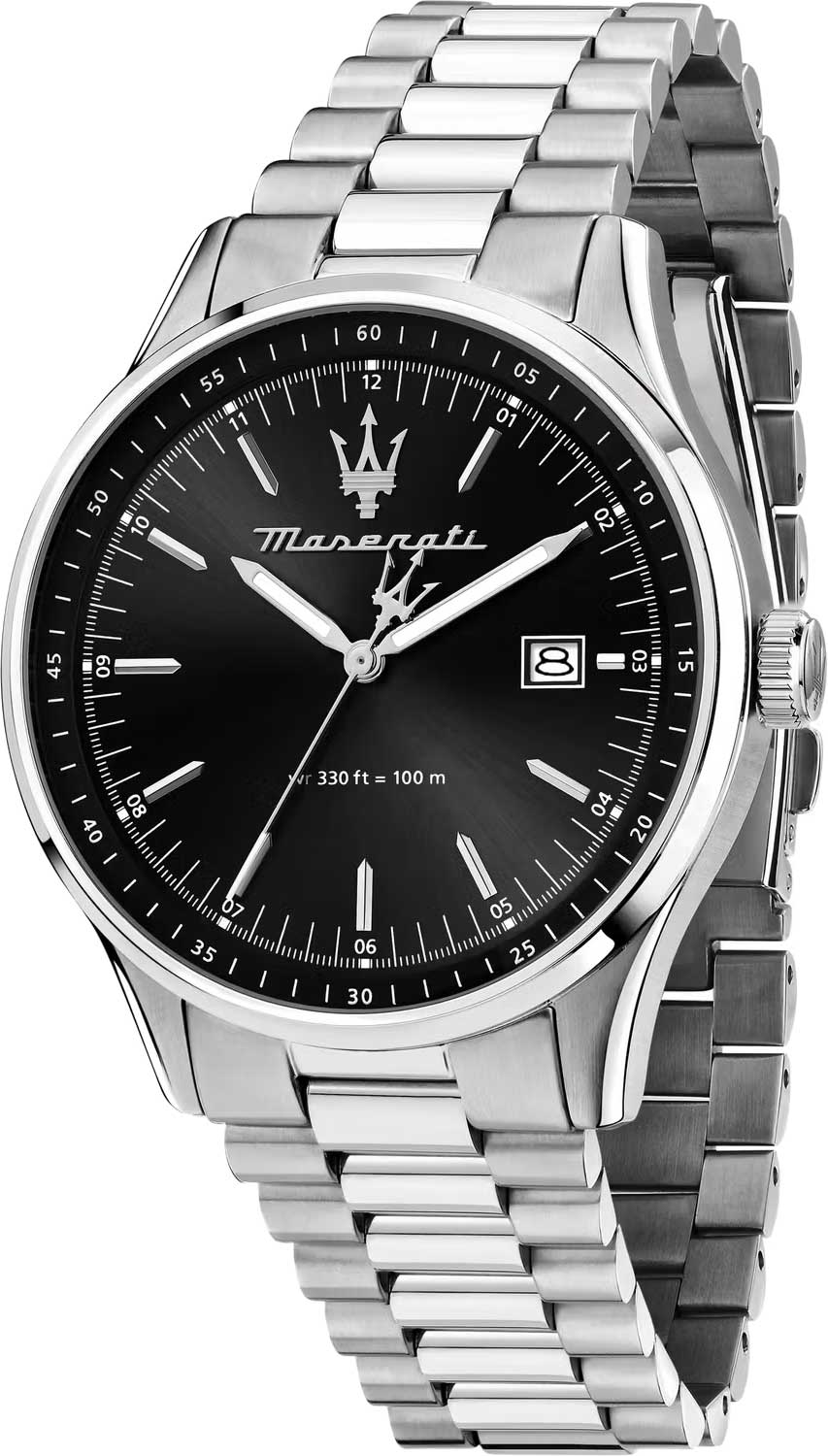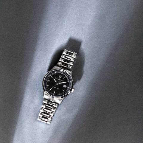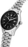 Мужские часы с круглым корпусом из нержавеющей стали. Циферблат украшен узором в виде солнечных лучей по технологии Sunray и логотипом бренда «Maserati». Часовые метки выполнены в виде штрихов. Окно для отображения даты расположено в положении «три часа». Задняя крышка фиксируется винтом, а заводная головка имеет завинчивающийся механизм. Браслет оснащен раскладывающейся застежкой.