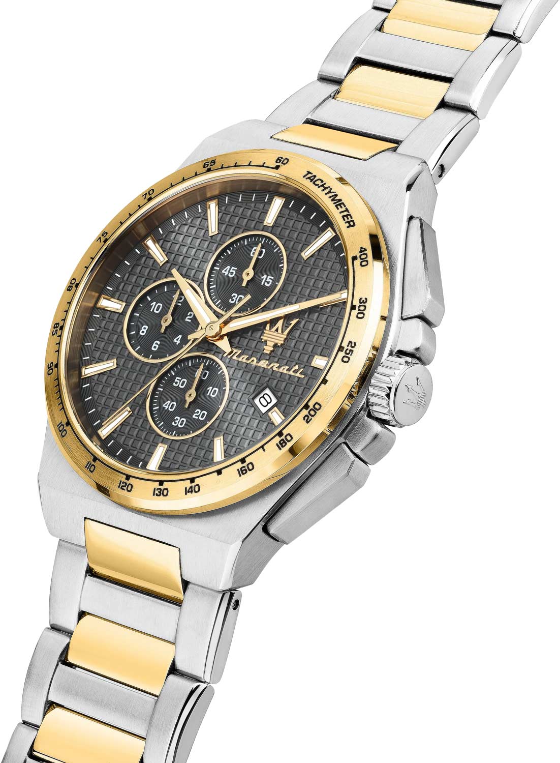 Мужские наручные часы с функциями секундомера и тахиметра. Корпус изготовлен из стали, его поверхность может быть как полированной, так и матовой. Циферблат с клетчатым узором и логотипом бренда создан по технологии Sunray и покрыт минеральным стеклом.