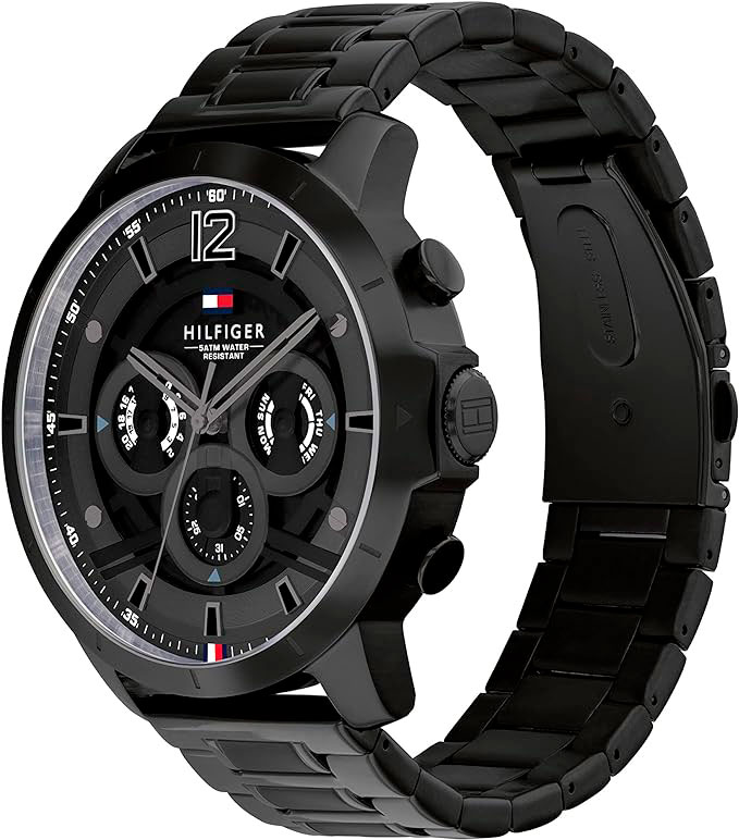 Часы с массивным корпусом и элегантным дизайном подчеркнут мужественность своего владельца. Мужские часы Luca оснащены 12-часовым и 24-часовым форматами времени. В 24-часовом формате на отдельных циферблатах отображаются дата и день недели. Циферблат украшен метками в виде штрихов, точек и арабской цифры 12. Защищенная рифленая заводная головка. Браслет с раскладывающейся застежкой.