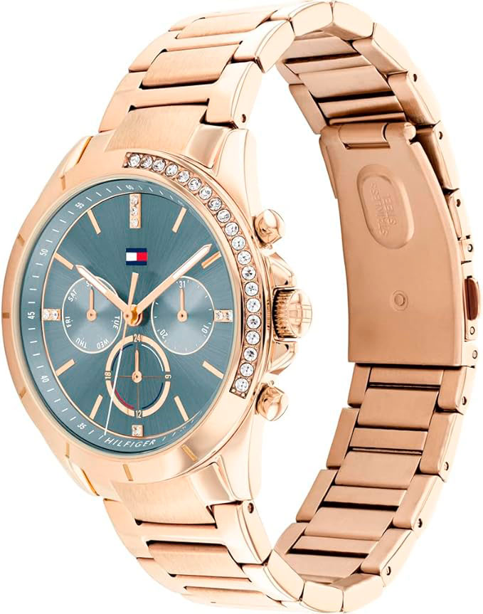 Эти элегантные и практичные часы непременно станут вашим любимым украшением. Женские часы Kennedy с круглым корпусом оснащены 12-часовым и 24-часовым форматами времени. Дата и день недели отображены на отдельных циферблатах. Стрелки покрыты люминесцентным составом, который светится в темноте после короткого пребывания на свету. Заводная головка имеет рифленую поверхность и защиту. Браслет с раскладывающейся застежкой. Кнопки рядом с заводной головкой не работают и служат лишь декоративным элементом.