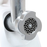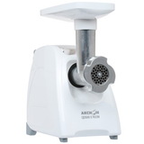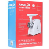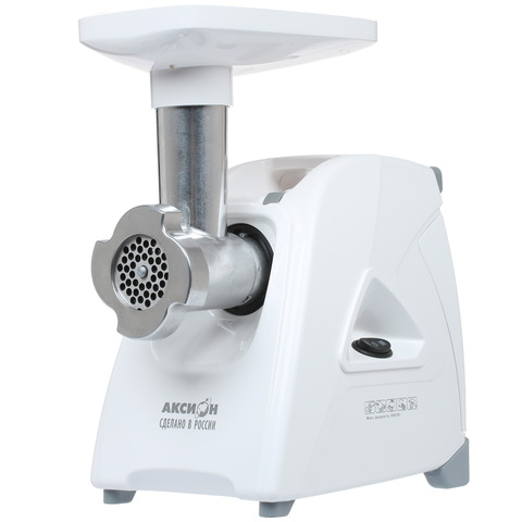 Мясорубка электрическая "Аксион" М35.03 – мощь и удобство! Цена вопроса? Мощность двигателя 1500Вт и функция реверса легко справятся даже с самым жестким мясом всего за 60 секунд на 1,7кг продукта! В комплекте овощереза с тремя насадками, диск для фарша (диаметр отверстий - 4,9мм) и защитный пластиковый колпак (есть запасной). При блокировке шнек просто заменяется новым колпаком за одну минуту!