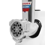 Мясорубка Polaris PMG 2050 управляется позиционной клавишей. В комплекте поставляются 3 цилиндрические насадки для нарезки овощей, стальные решетки с отверстиями диаметром 5 и 7 мм для фарша разного помола. Пластиковый лоток и толкатель позволяют удобно загружать продукты. Нескользящее основание предотвращает смещение мясорубки на поверхности.