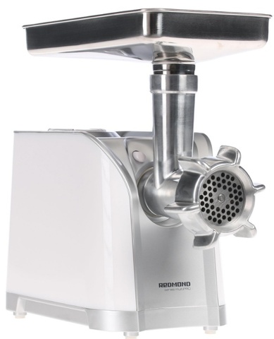 Серебряно-белая мясорубка Redmond RMG-1203-8 сочетает стильный дизайн корпуса (металл+пластик) и удобство металлического лотка. Компактные размеры (16×22,5×35 см), вес – всего лишь 4,5 кг! В комплекте идут три диска для фарша, насадка-тёрка, устройство для домашних колбас, соковыжималка и форма-кеббе. Все детали удобно хранятся в специальном отделении! Продуктивность модели — до 1,5 кг/мин., мощность мотора — рекордные 3000 Вт!, Надежная защита от перегрузок плюс функция обратного вращения обеспечивают комфортную работу без забот.