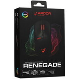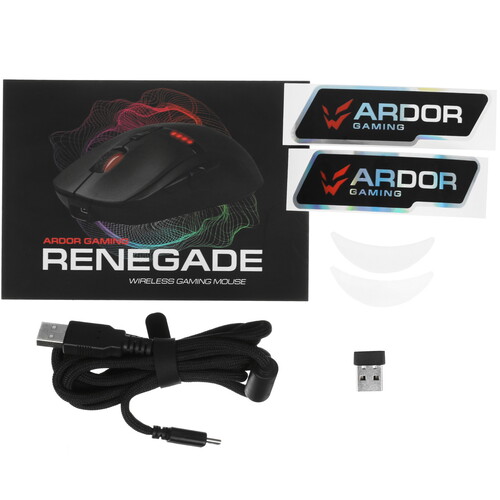 Беспроводная/проводная мышь ARDOR GAMING Renegade Wireless, как следует из её названия, предназначена для игровых систем. В её оснащение входит оптический светодиодный сенсор PixArt PMW3325 с разрешением до 10000 dpi, что позволяет точно управлять курсором в динамичных играх. Частота опроса сенсора составляет стандартные 1000 Гц. Мышь оборудована восемью программируемыми кнопками и предназначена для хвата правой рукой. Её отличительная черта — яркая многоцветная подсветка.
