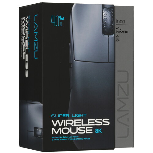 Беспроводная мышь LAMZU Inca представлена в чёрном цвете. Она удобна для использования как правой, так и левой рукой. Устройство оснащено шестью кнопками. Заряда аккумулятора хватает на 80 часов работы.