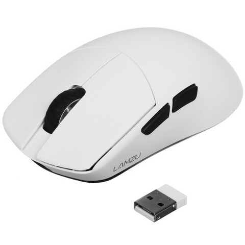 Беспроводная и проводная мышь LAMZU Maya в белом исполнении подключается к компьютеру через радиоканал с радиусом действия до 10 метров или посредством 1.8-метрового кабеля с тканевой оплёткой для защиты от износа. В устройстве предусмотрены пять программируемых кнопок, которые можно настроить на выполнение определённых последовательностей действий, что особенно удобно для офисной работы и игр. Мышь LAMZU Maya оснащена оптическим светодиодным сенсором PixArt PAW3395, поддерживающим изменяемое разрешение до 26000 dpi.