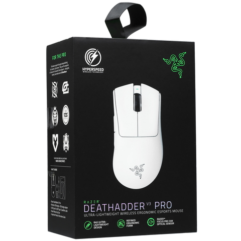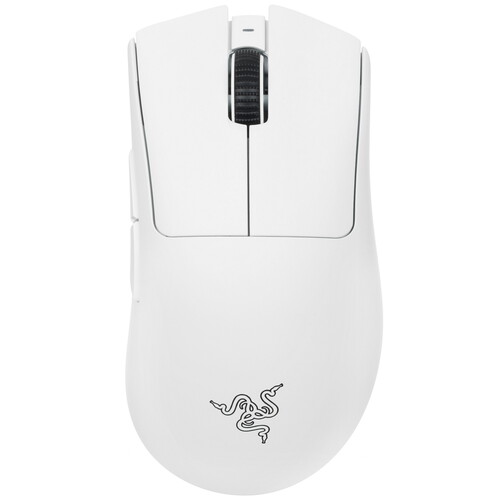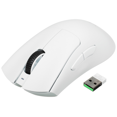 Беспроводная/проводная мышь Razer DeathAdder V3 Pro имеет белый пластиковый корпус с матовым покрытием. Её эргономичный дизайн разработан для удобного использования правой рукой. Для улучшения тактильных ощущений верхняя часть корпуса и клавиши разделены.