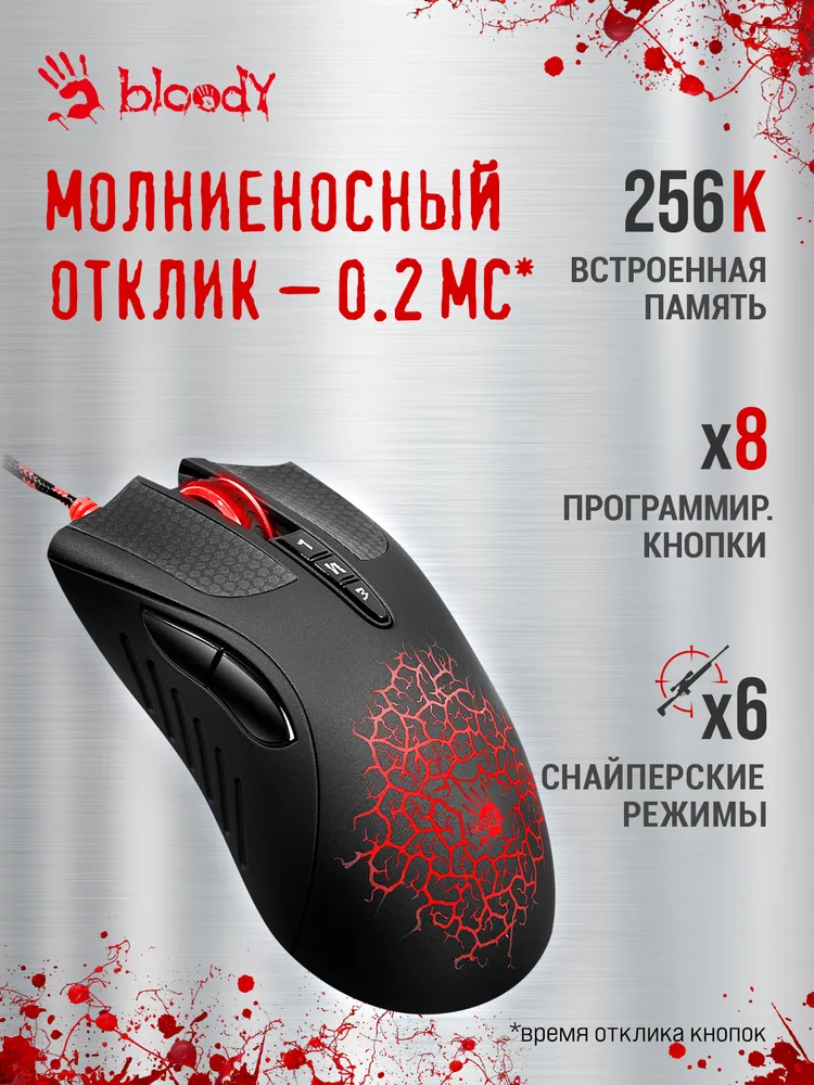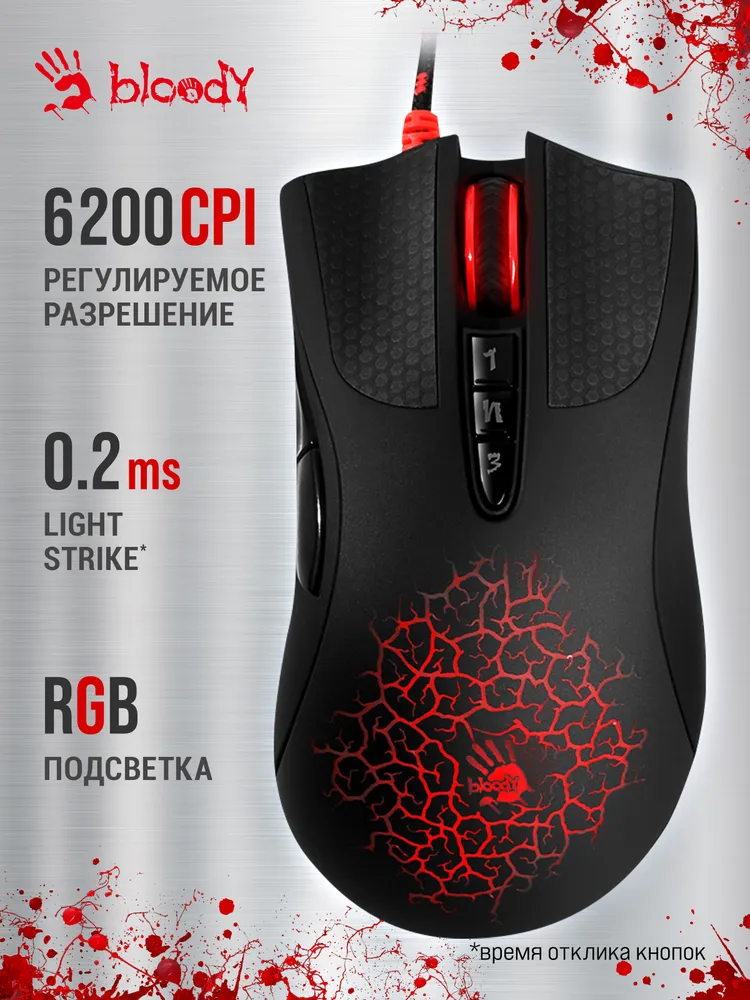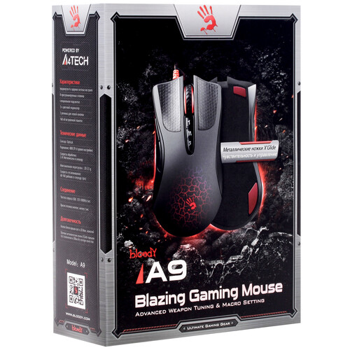 Проводная мышь A4Tech Bloody Blazing A9 отличается ярким дизайном с многоцветной светодиодной подсветкой. При максимальном разрешении до 4000 точек на дюйм она демонстрирует высокую скорость отклика — всего 1 миллисекунда. Эргономичная форма обеспечивает комфорт и снижает напряжение в мышцах правой руки даже при длительных игровых сессиях.