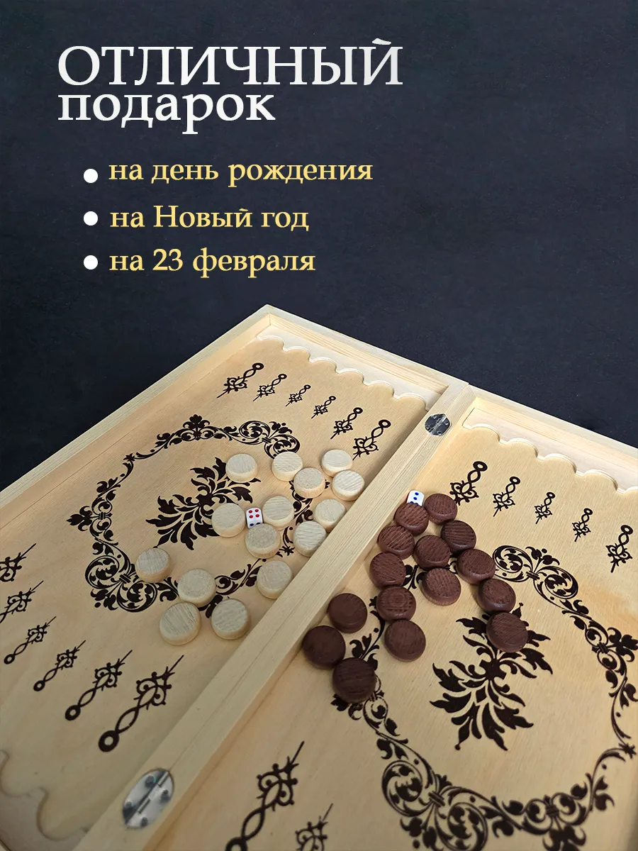 Эксклюзивный подарочный набор – настольные нарды из массива дерева! Кейс с металлическим замком включает игровые поля для нард (две популярные версии), шахмат и шашек. Яркий рисунок выполнен прямой печатью по древесине. В комплект входят деревянные фишки. Игра станет оригинальным подарком мужчине на День Рождения, Новый Год, 23 Февраля или иной праздник.