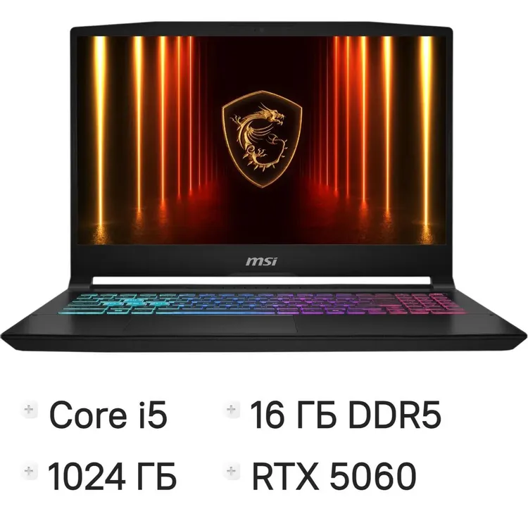 Ноутбук игровой MSI Katana 15, Intel Core i5 14450HX, 16ГБ DDR5, 1ТБ SSD, GeForce RTX 5060 для ноутбуков - 8 ГБ, FreeDOS - купить в Донецке ДНР