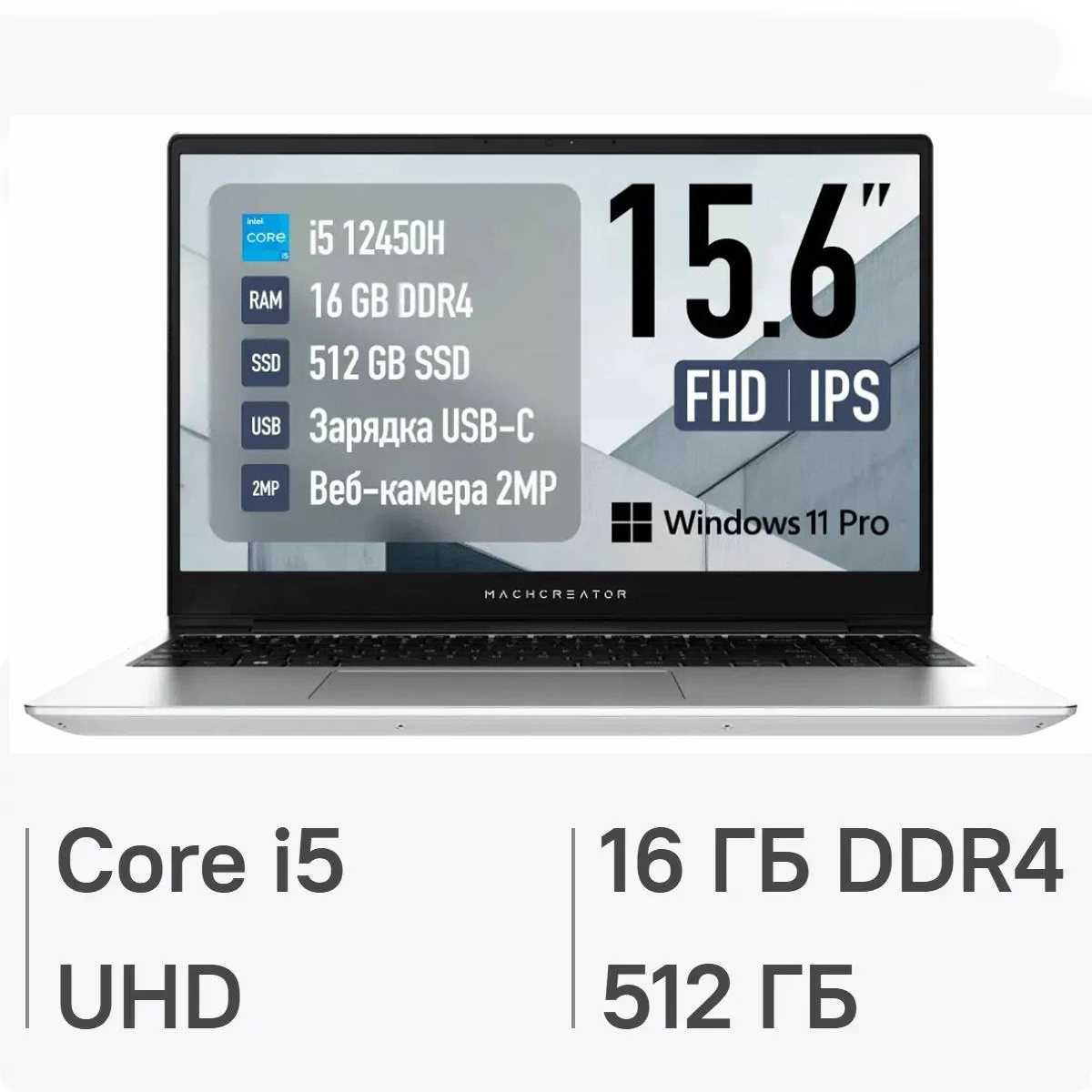 Ноутбук Machenike Machcreator Genesis N15 Ноутбук 15.6", Intel Core i5-12450H, RAM 16 ГБ, SSD 512 ГБ, Intel UHD Graphics, Windows Pro - купить в Донецке ДНР