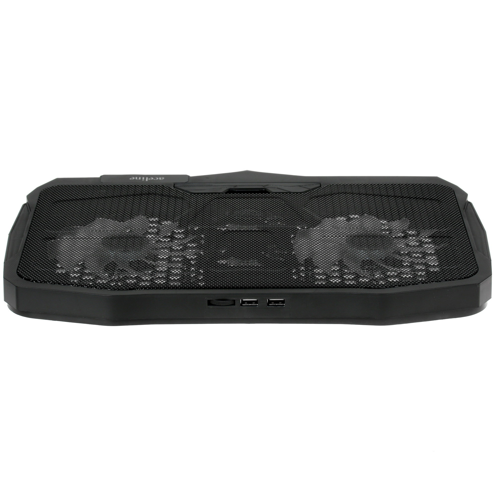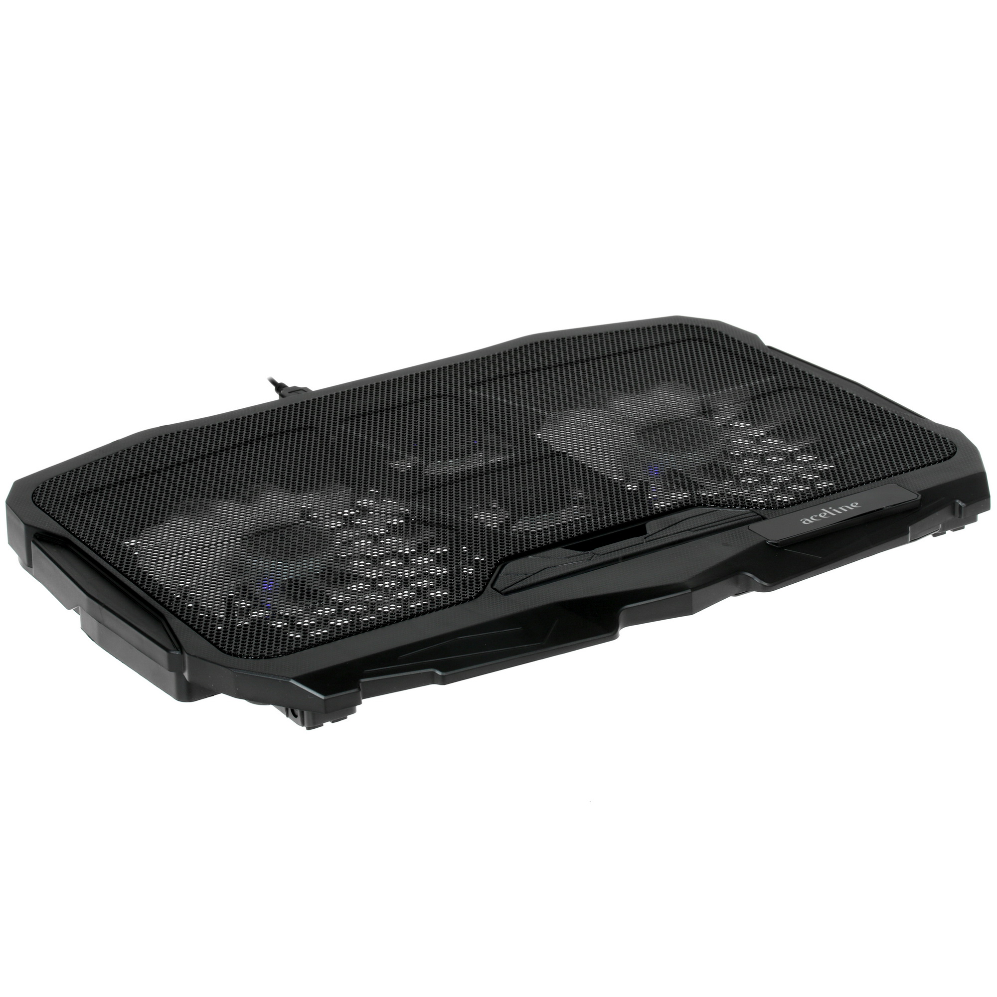 Подставка Aceline CP-2 изготовлена из прочного пластика, устойчивого к повреждениям. Она отличается лаконичным дизайном и подсветкой вентиляторов. Питание осуществляется через USB-порт компьютера, а на корпусе предусмотрены два дополнительных аналогичных порта.