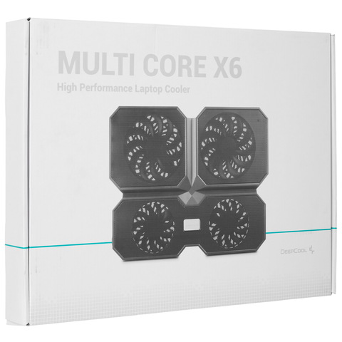 Подставка для ноутбука DEEPCOOL MultiCore X6 разработана специально для ноутбуков с диагональю экрана 15.6 дюймов. Она отличается уникальным дизайном в форме бабочки. Подставка разделена на четыре равные секции, каждая из которых оборудована средним вентилятором, работающим в нескольких режимах интенсивности. Управление вентиляторами осуществляется с помощью специального переключателя.