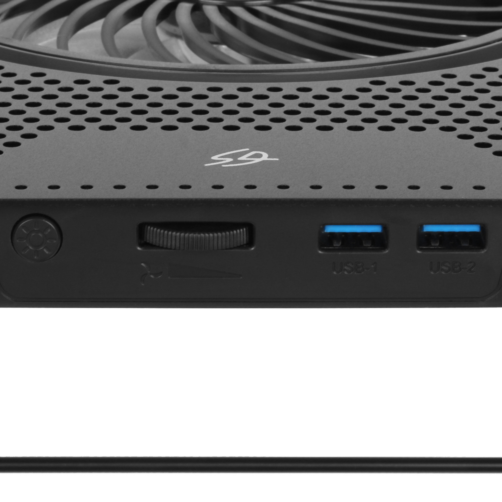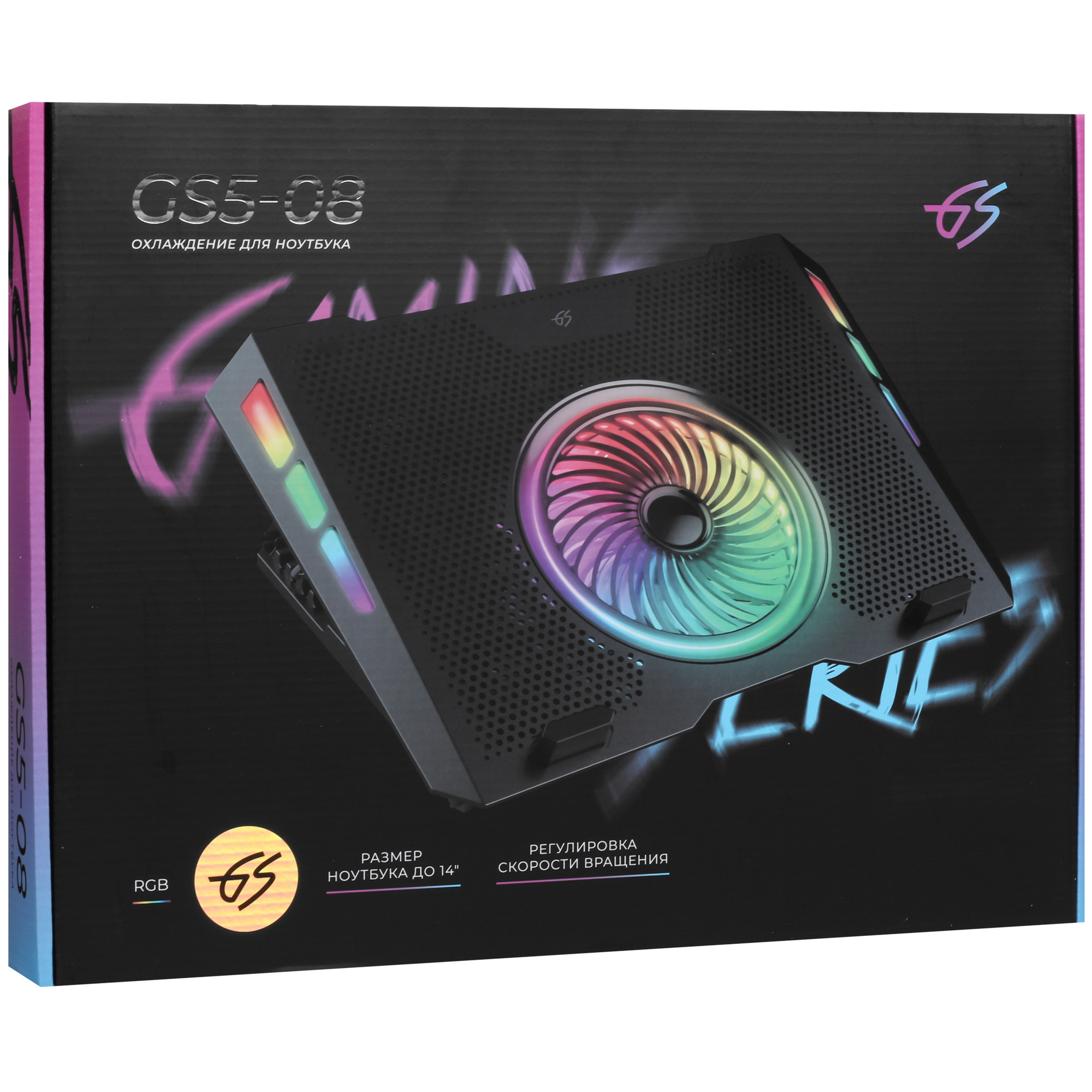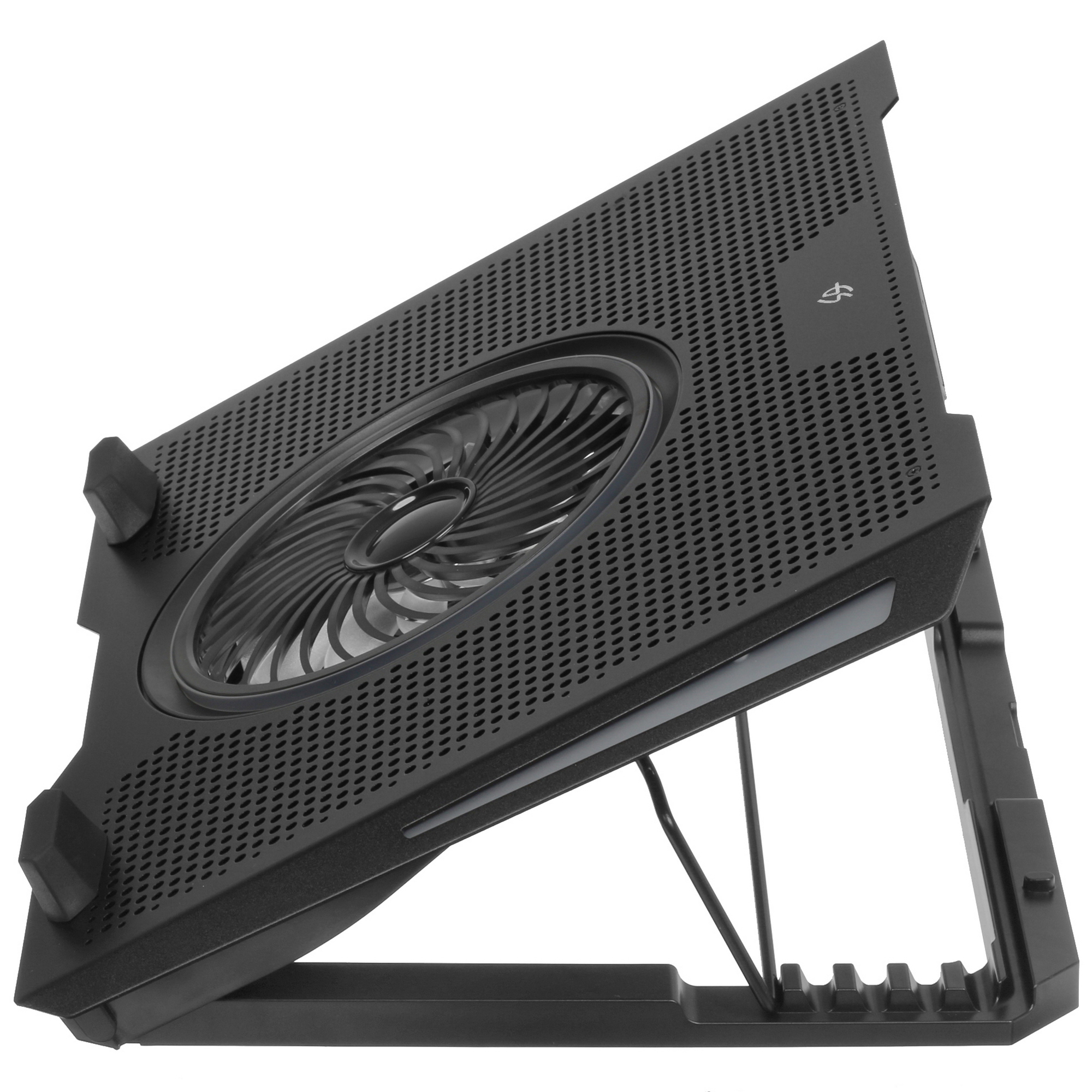 Подставка для ноутбука DEXP Gaming Series GS5-08 предназначена для ноутбуков с диагональю до 14 дюймов. Модель оборудована пятью вентиляторами, RGB-подсветкой и двумя USB-портами. Регулируемая высота конструкции изготовлена из металла и пластика.