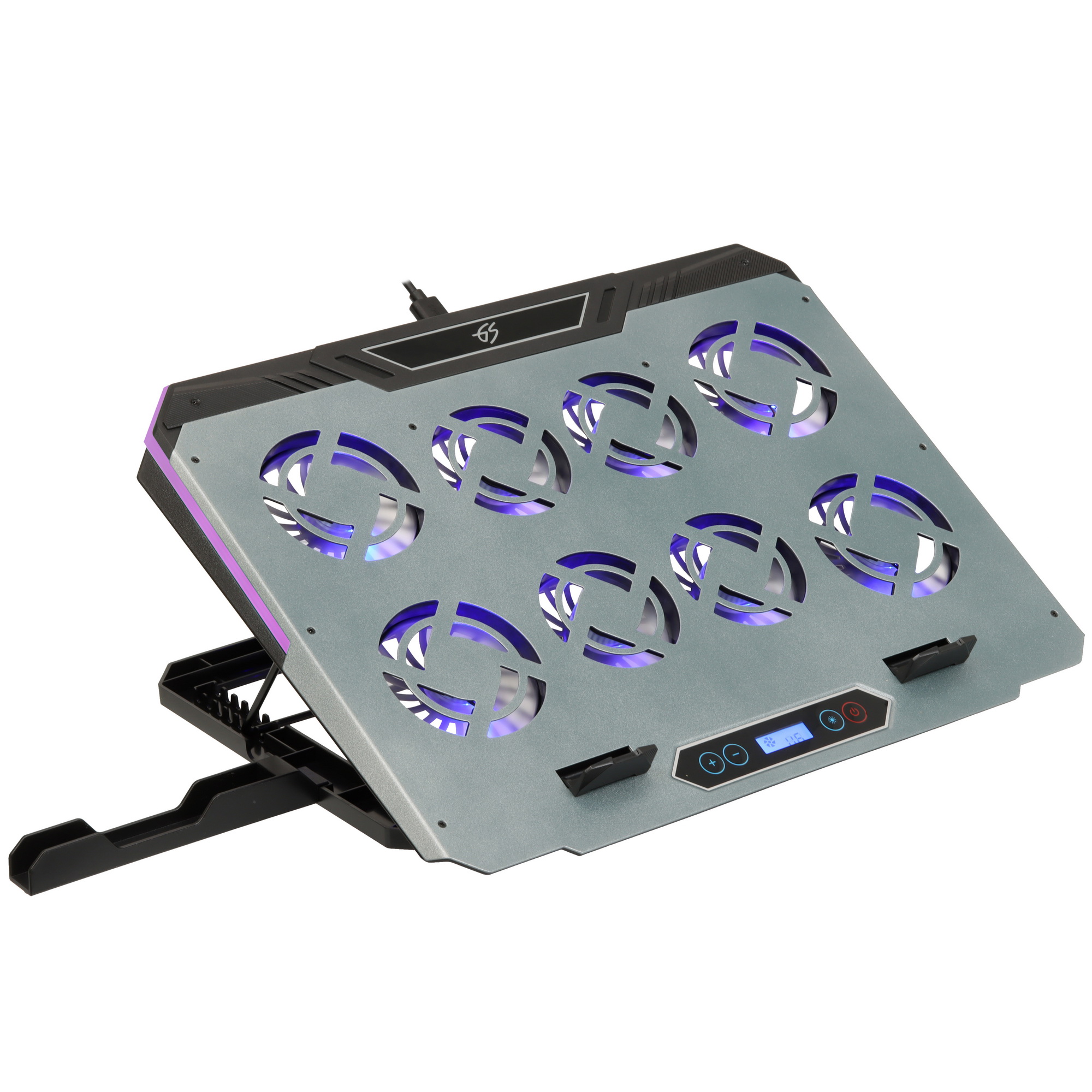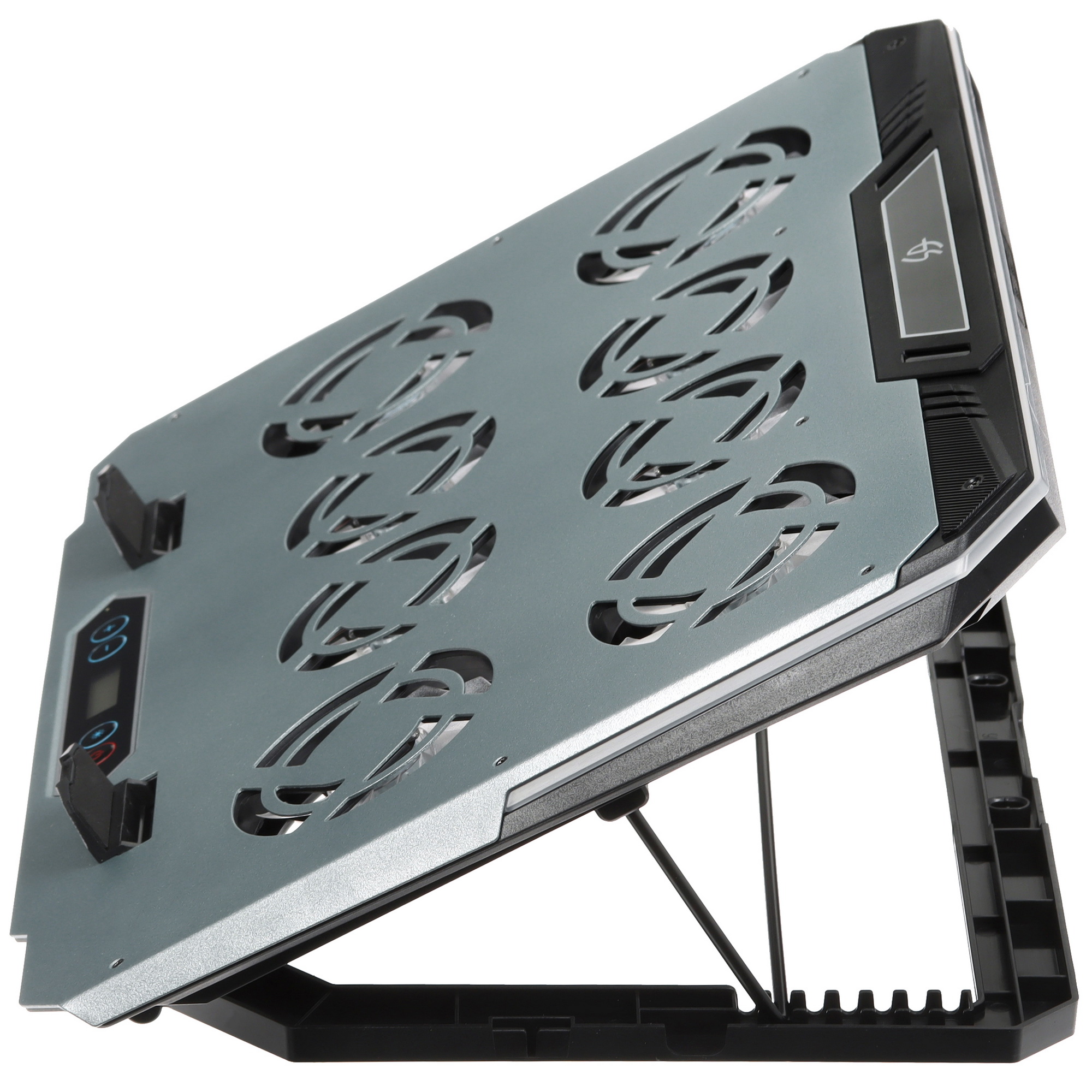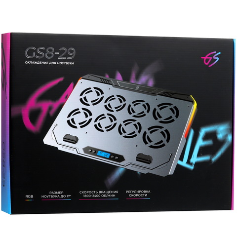 Подставка для ноутбука DEXP Gaming Series GS8-29 предназначена для лэптопов с диагональю до 17 дюймов. В её оснащение входят 8 вентиляторов, RGB-подсветка и два порта USB. Регулируемая высота подставки изготовлена из алюминия и пластика. Для удобства пользователя предусмотрена возможность изменения угла наклона конструкции.