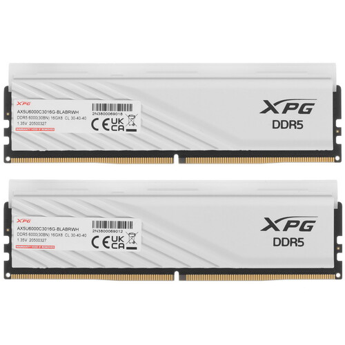 Оперативная память ADATA XPG Lancer Blade RGB (AX5U6000C3016G-DTLABRWH) отличается белыми радиаторами охлаждения и прозрачной световой панелью с встроенными RGB-светодиодами. Она создана для пользователей, стремящихся повысить производительность и придать своему компьютеру стильный внешний вид. В комплект входят два модуля DDR5 по 16 ГБ каждый.