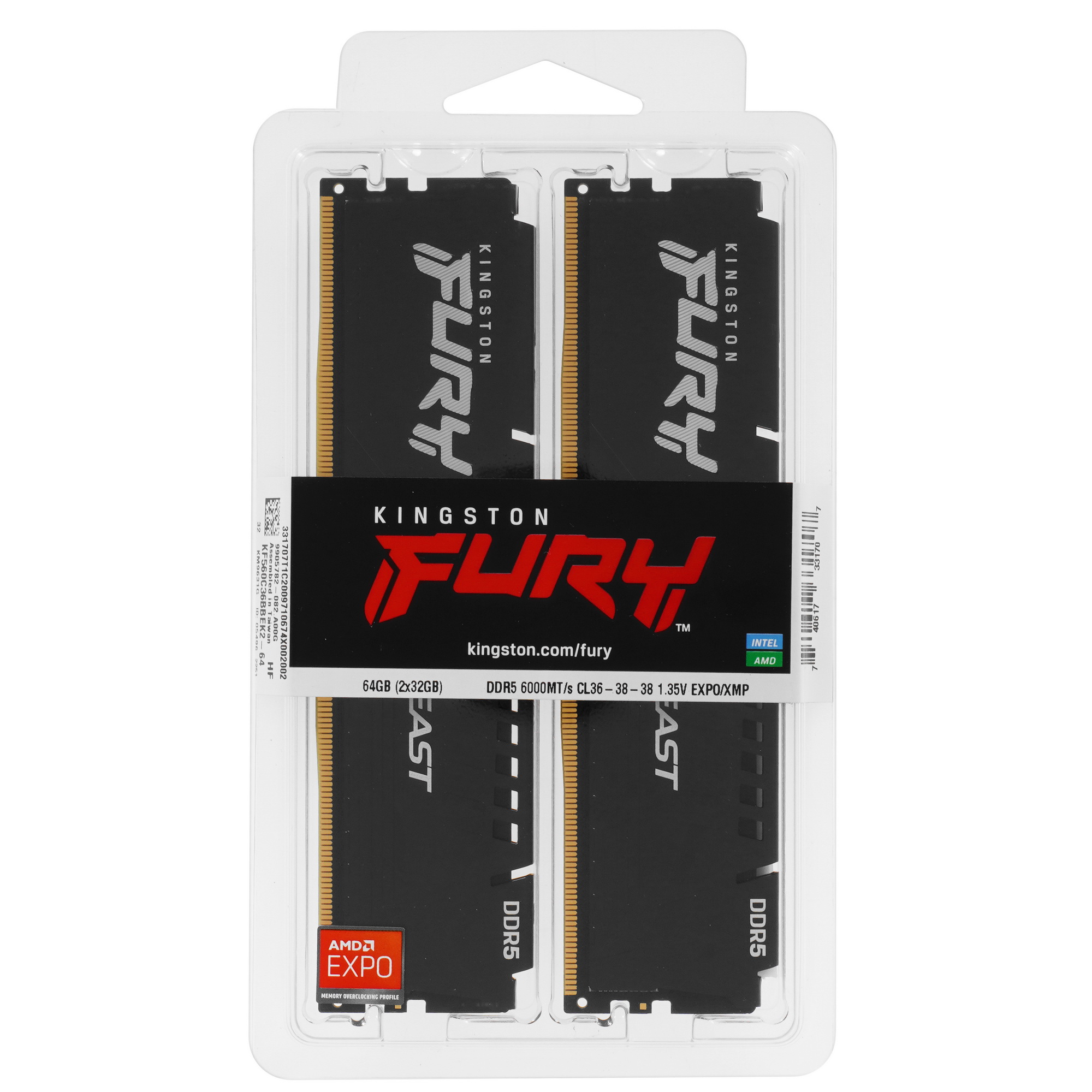 Модули оперативной памяти Kingston FURY Beast Black DDR5 предназначены для игровых систем. Они отличаются высокой производительностью и стабильностью при работе с ресурсоемкими приложениями. Комплект состоит из двух модулей по 32 ГБ, функционирующих на частоте 6000 МГц. Технология AMD EXPO облегчает процесс разгона. Алюминиевый радиатор эффективно рассеивает тепло и предотвращает перегрев. Встроенная система управления питанием и встроенная коррекция ошибок On-Die ECC обеспечивают надежную работу оперативной памяти Kingston FURY Beast.