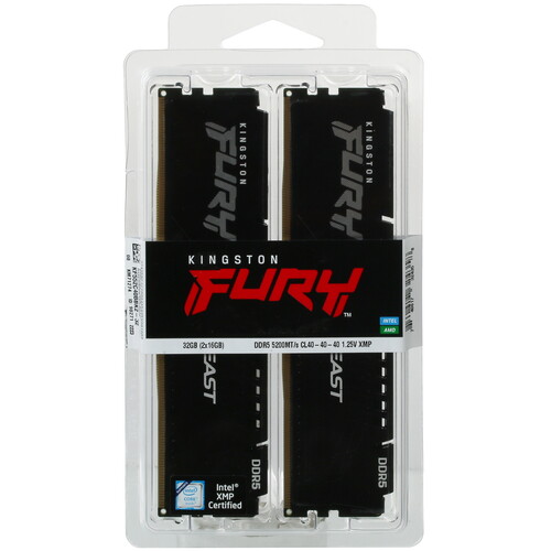 Kingston FURY Beast Black DDR5 — это оперативная память, созданная для игровых систем. Она обеспечивает высокую скорость обработки даже самых сложных задач. В комплект входят два модуля по 16 ГБ, работающие на частоте 5200 МГц. Поддержка Intel XMP 3.0 облегчает разгон аппаратной платформы. Алюминиевый радиатор с ребристой поверхностью эффективно отводит тепло и предотвращает перегрев. В памяти предусмотрена встроенная схема управления питанием и технология коррекции ошибок ECC. Напряжение в 1.1 В способствует снижению энергопотребления.