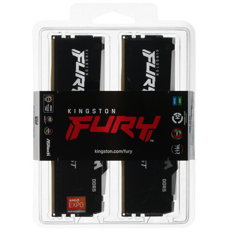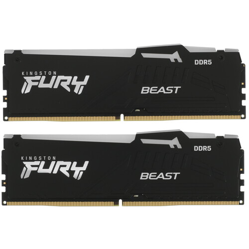 Оперативная память Kingston FURY Beast Black RGB отличается высокими техническими характеристиками, направленными на улучшение производительности и скорости компьютера для игр. В комплекте идут два модуля DDR5 емкостью по 16 ГБ. Тактовая частота 5600 МГц способствует более быстрому запуску приложений и реалистичному отображению игровых сцен. Для эффективного отвода тепла при интенсивной нагрузке на платах установлены алюминиевые радиаторы уникальной формы. Kingston FURY Beast Black RGB также обладает многоцветной RGB-подсветкой с широкими настройками и функцией синхронизации.