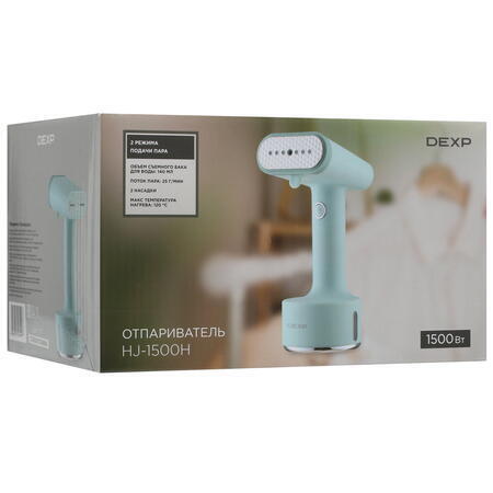 Ручной отпариватель DEXP HJ-1500H с удобным зелёным корпусом поможет быстро и аккуратно привести одежду в порядок. Благодаря съёмному баку очистка от налёта становится проще. Бак вмещает 140 миллилитров воды, что позволяет непрерывно работать до 6 минут. Стальной утюжок быстро расправляет складки. Насадки-щётки помогают удалять с одежды волоски и шерсть. Отпариватель DEXP HJ-1500H оснащён защитой от перегрева и автоматически отключается при пустом баке. С помощью кнопок можно выбрать один из двух режимов отпаривания для аккуратной глажки разных типов ткани. Для нагрева и подачи пара с мощностью 25 граммов в минуту отпаривателю требуется всего 25 секунд.