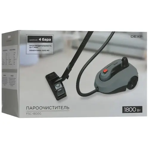 Благодаря набору насадок напольный пароочиститель DEXP FSC-1800G подходит для ухода за одеждой, шторами и мебелью, чистки окон, мытья полов. Сухой поток пара под давлением 4 Бар тщательно обрабатывает поверхности, удаляет вместе со въевшимися загрязнениями вирусы и бактерии. Бак на 1.5 л воды не требует дозаправки в течение 25 минут работы. DEXP FSC-1800G действует в 1 режиме подачи пара с мощностью 50 г/мин. Устройство требует около 8 минут ожидания для нагрева до 120 °C. Гибкий шланг длиной 1.45 м облегчает обработку труднодоступных мест, чистки окон и штор на гардине. Для защиты от поломки устройство оснащено системой автоотключения при перегреве и отсутствии воды в баке.