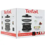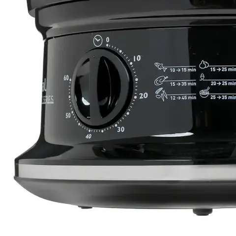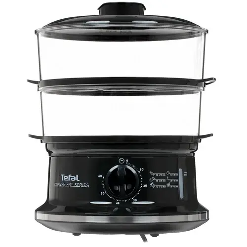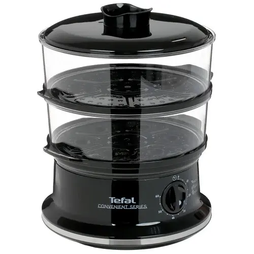 Пароварка Tefal CONVENIENT SERIES VC140131 в стильном черном корпусе с прозрачной рабочей емкостью из пластика станет настоящей находкой для поклонников правильного питания. При потреблении 900 Вт она быстро и эффективно готовит пищу на пару, при этом управляется при помощи поворотного регулятора. Для удобства пользователя у пароварки имеется таймер на 60 минут с автоматическим отключением. Модель состоит из 2 ярусов, а также имеет специальную чашу для риса и углубление для варки яиц. Такая комплектация обеспечивает пароварке универсальный спектр применения. Решетки модели для размещения пищи имеют съемную конструкцию. Пароварка Tefal VC140131 имеет встроенный индикатор жидкости и позволяет доливать воду непосредственно в процессе приготовления.