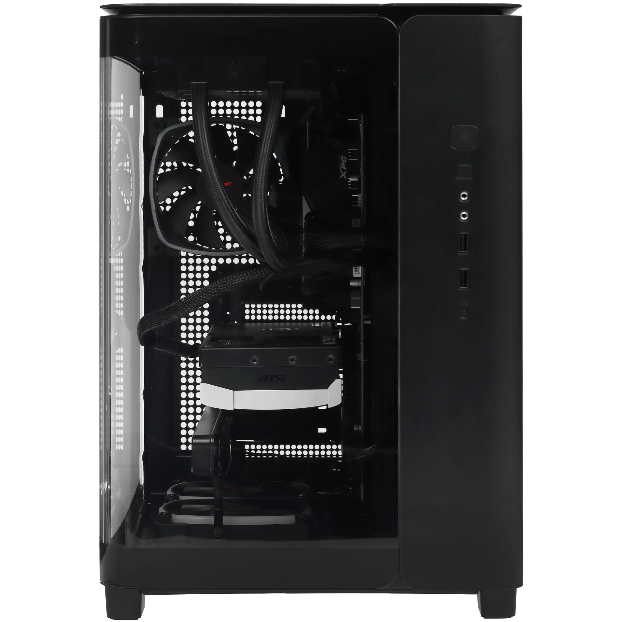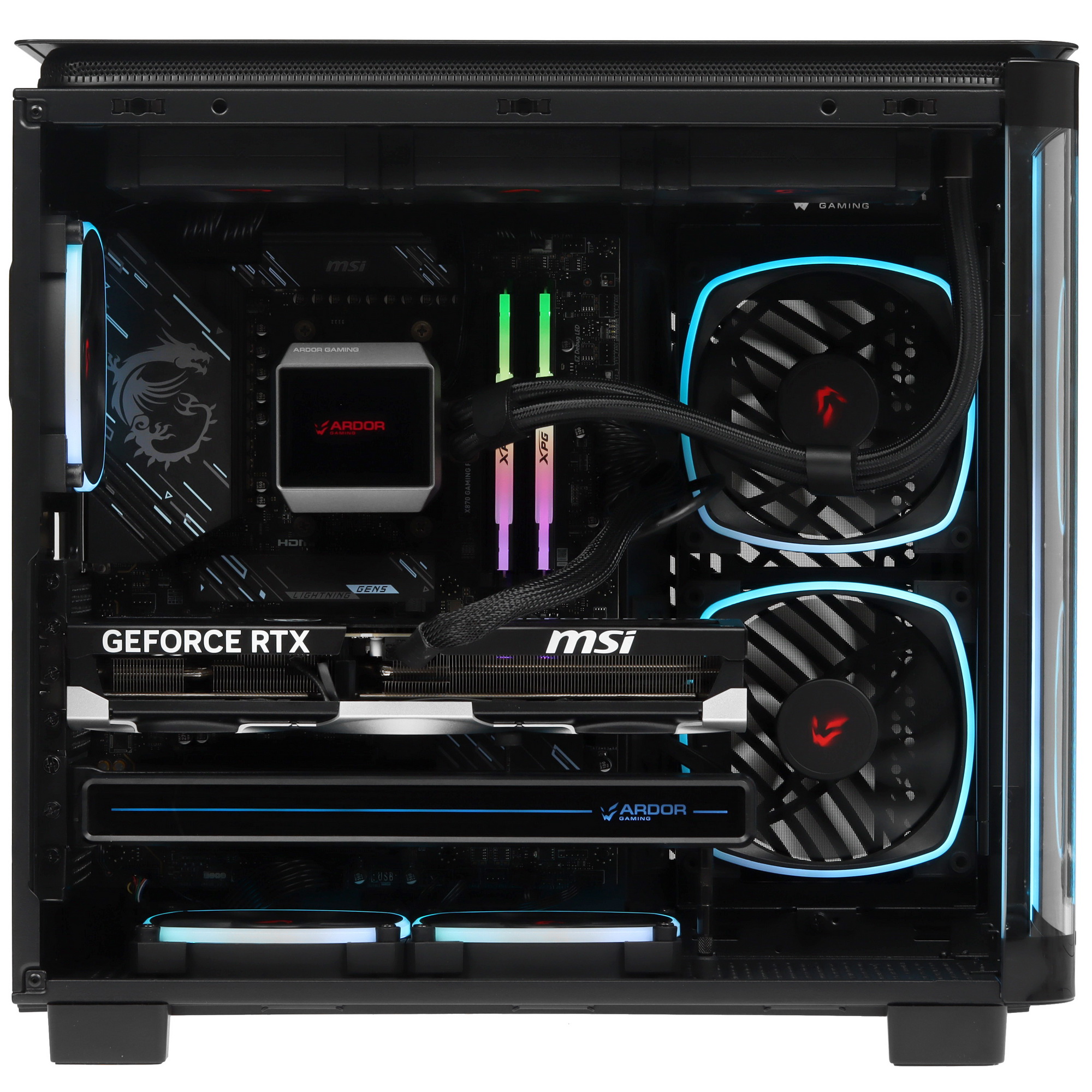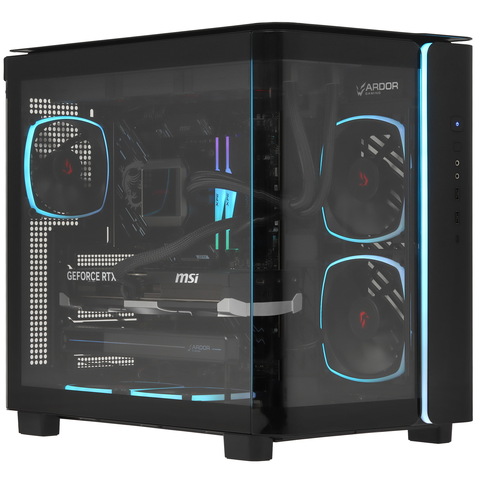 Игровой системный блок ARDOR GAMING EVO X124 заключён в стильный корпус-аквариум MONTECH KING 95 PRO, оснащённый двумя панелями из закалённого стекла, устойчивого к царапинам. С фронтальной стороны находится панель ввода/вывода, что делает его удобным для размещения на столе. Фронтальные порты USB облегчают подключение внешних устройств, включая накопители, периферийные устройства, смартфоны и другую технику. Система поддерживает многоцветную подсветку компонентов. Для обеспечения стабильной температуры процессора используется жидкостное охлаждение DEEPCOOL MYSTIQUE 360. Операционная система не предустановлена.
