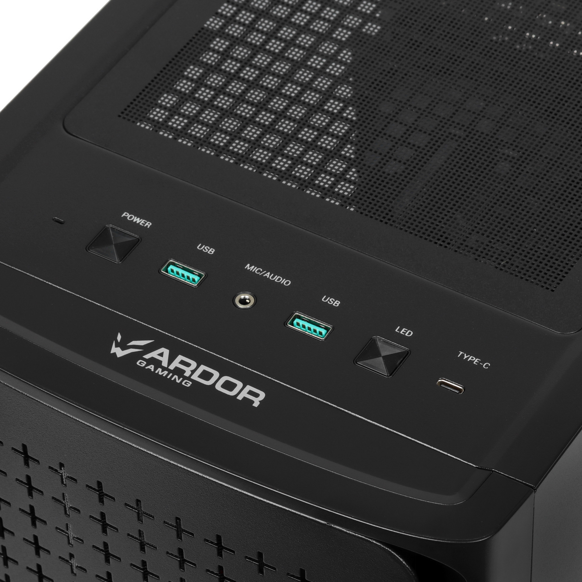 Компьютер ARDOR GAMING RAGE H343 в черном цвете оснащен процессором Intel Core i5-13400F, который работает на частоте 2.5 ГГц и имеет 6 ядер. Это обеспечивает стабильную работу даже при запуске требовательных приложений. 32 ГБ оперативной памяти DDR5 позволяют одновременно использовать несколько программ без потери производительности. Видеокарта GeForce RTX 4070 с 12 ГБ видеопамяти гарантирует высокое качество графики и плавность изображения в играх. SSD накопитель емкостью 1 ТБ обеспечивает быструю загрузку операционной системы и приложений. Блок питания мощностью 650 Вт обеспечивает стабильное питание всех компонентов. Компьютер ARDOR GAMING RAGE H343 также оснащен боковым окном, что позволяет наблюдать за работой внутренних компонентов и придает устройству эстетичный внешний вид.