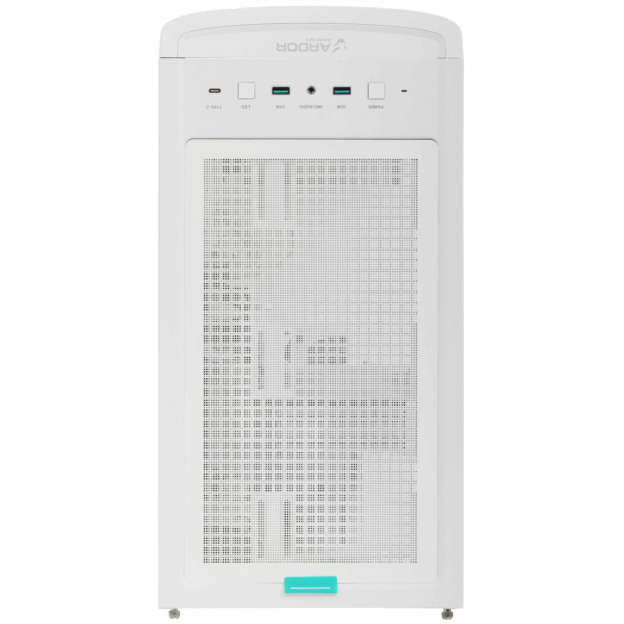 Игровой ПК ARDOR GAMING RAGE H428 в белом корпусе DEEPCOOL CK560 формата Mid-Tower оборудован разноцветной подсветкой компонентов, управление которой осуществляется через кнопку на панели ввода/вывода. С боковой стороны расположено окно из закаленного стекла, отличающееся высокой устойчивостью к царапинам. Компьютер поставляется без операционной системы. В передней части имеются три порта USB Type-C и два Type-A, что облегчает подключение внешних накопителей, периферийных устройств и другой техники.