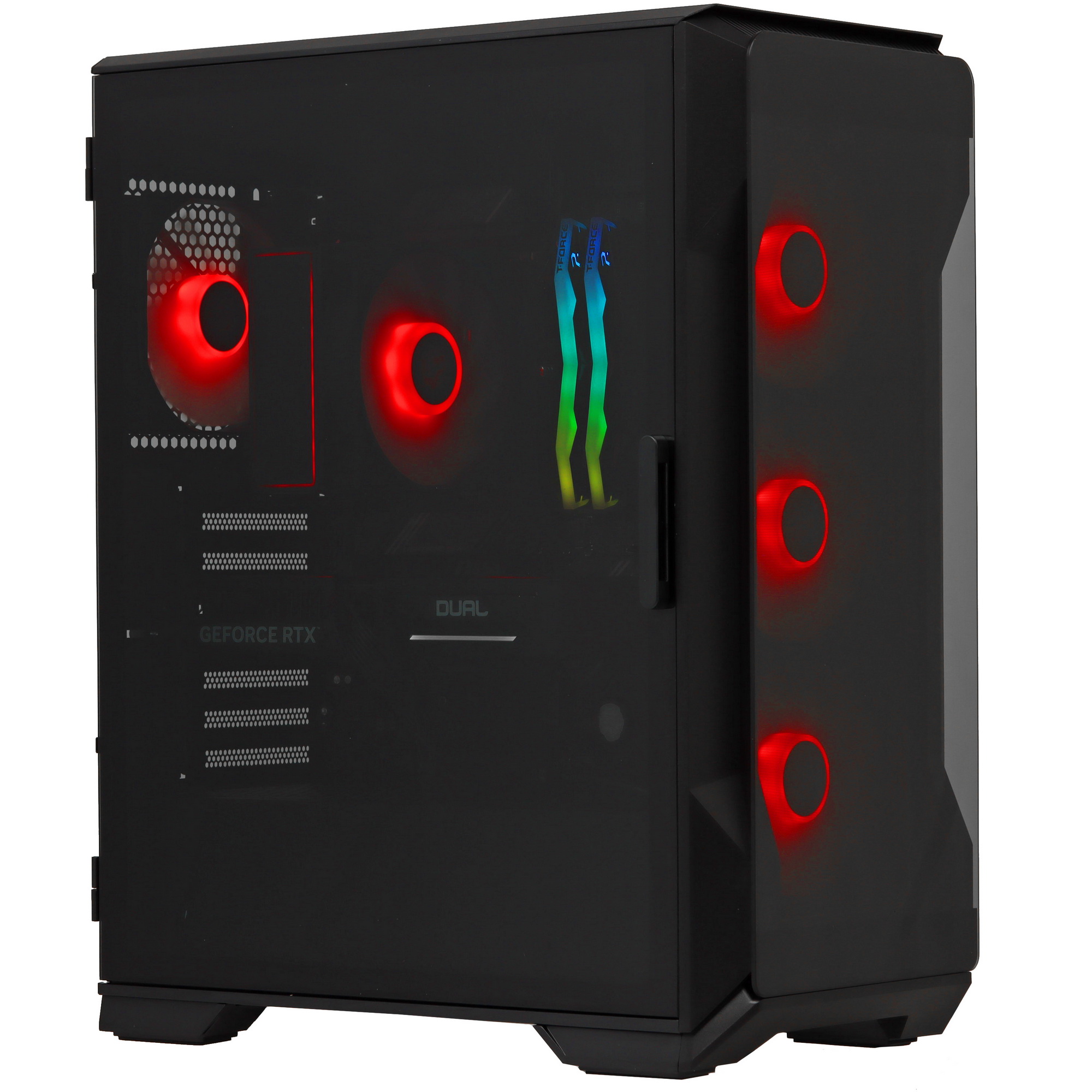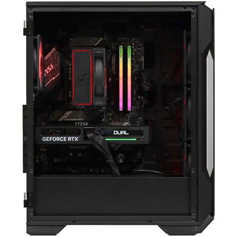 Форм-фактор Mid-Tower делает этот ПК универсальным: он подходит как для создания обычного пользовательского компьютера, так и для игровой системы. Прозрачное окно позволяет видеть внутренние компоненты, что упрощает диагностику неисправностей и замену дисков или других элементов.