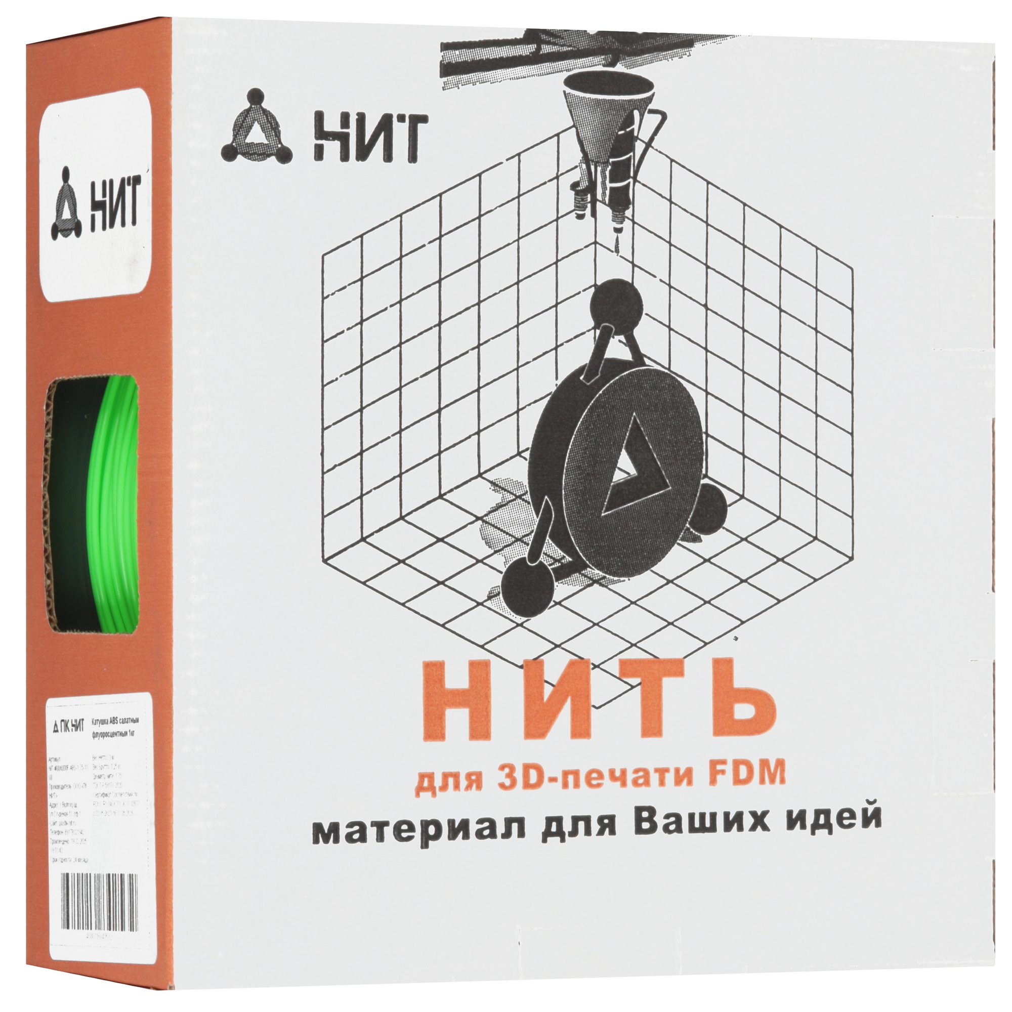 Флуоресцентный пластик НИТ ABS предназначен для филаментной печати методом послойного наложения материала. Нить диаметром 1.75 мм совместима с различными моделями 3D-принтеров. Этот ABS-материал чувствителен к температурным колебаниям, поэтому для его использования необходима термокамера или стол с подогревом до 90 градусов Цельсия. Катушка с размерами 20 см в диаметре, 7.52 см в высоту и 5.3 см в посадочном месте защищает нить от перегибов и повреждений, обеспечивая её аккуратную подачу в экструдер.