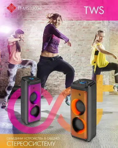 Домашняя аудиосистема Telefunken TF-MS3303B отличается стильной портативной конструкцией и широкими функциональными возможностями. Она оборудована мощной акустической системой с двумя динамиками 165 мм каждый и выходной мощностью в пределах 90 Вт, что обеспечивает воспроизведение насыщенного, чистого, реалистичного звука. Возможности подключения данной модели представлены портом USB, модулем Bluetooth, аудиоразъемами, считывателем карт памяти. Среди особенностей аудиосистемы отмечаются FM-проигрыватель и караоке. Аккумулятор позволяет слушать музыку до 10 часов в непрерывном режиме без необходимости подзарядки. Панель управления на корпусе и пульт ДУ гарантируют простоту настройки параметров воспроизведения Telefunken TF-MS3303B.
