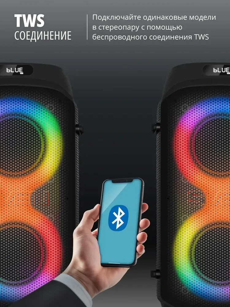 Соедините по беспроводному каналу две колонки и создайте стереопару на основе TWS-технологий и ВАШУ вечеринку запомнят надолго! Мощный широкоформатный стереозвук создаст незабываемые музыкальные образы!